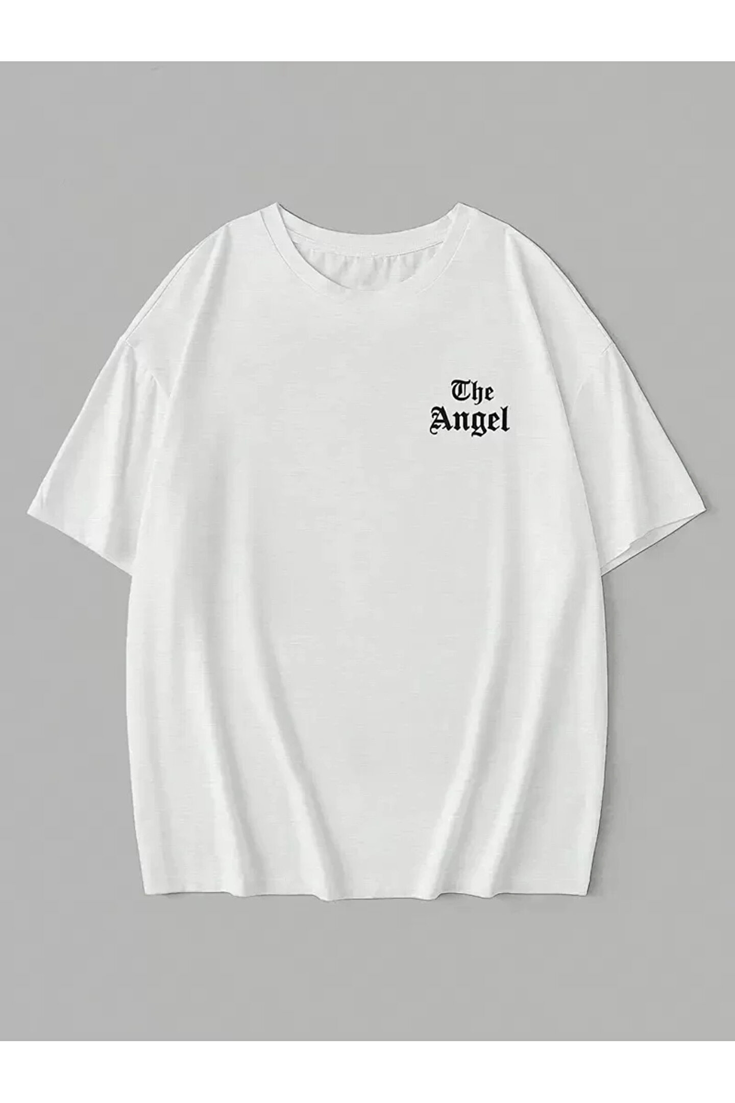 20/1 Penye Compack Dark Angel Baskılı Oversize Kısa Kol Yazlık T-shirt- Beyaz