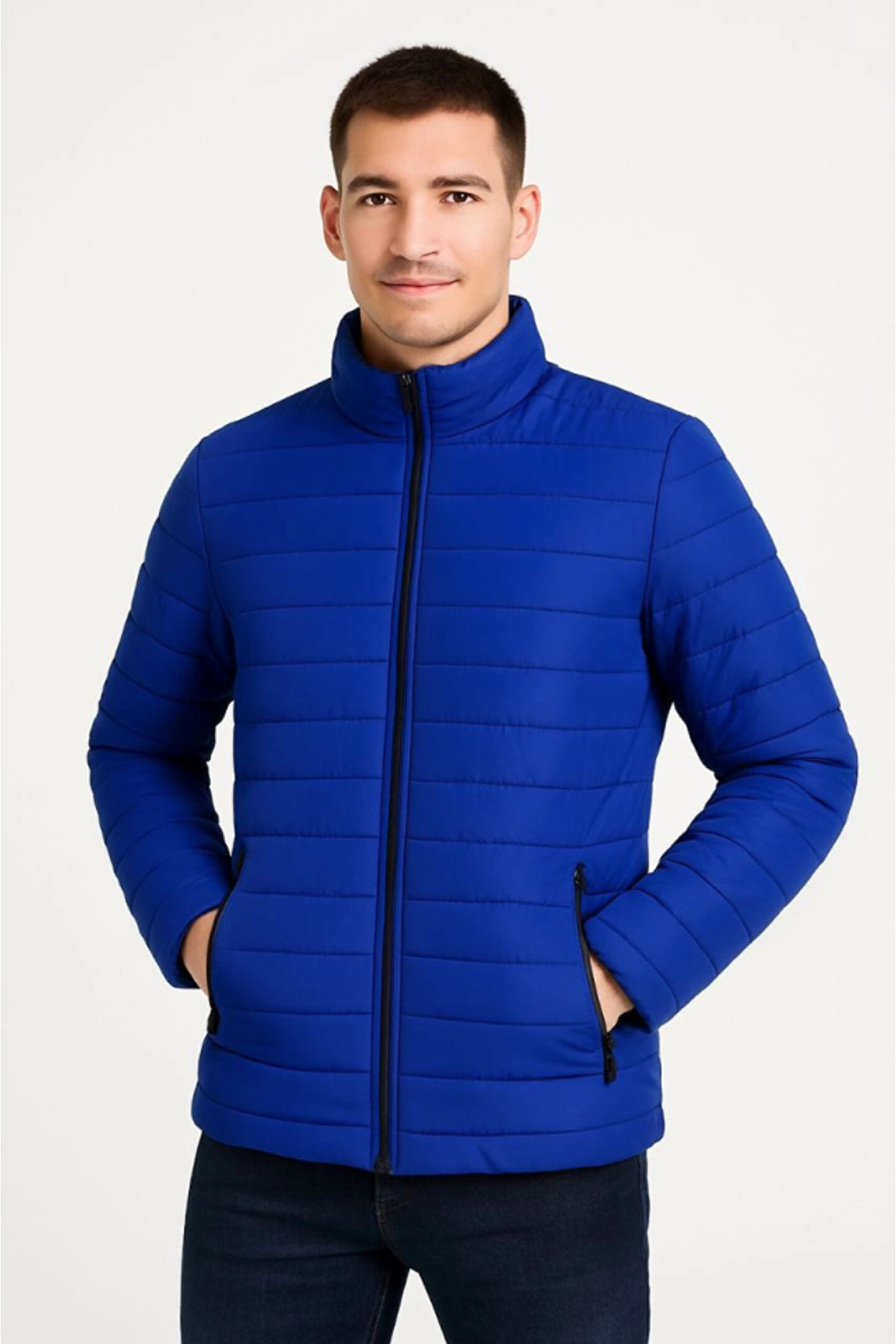 Megstill EQURİ Erkek Bomber Mont Ceket – Su İtici Kumaş, Kapitone Astarlı, Fermuarlı, Kışlık - Saks Mavisi