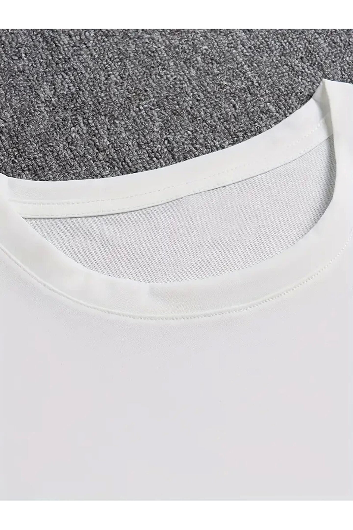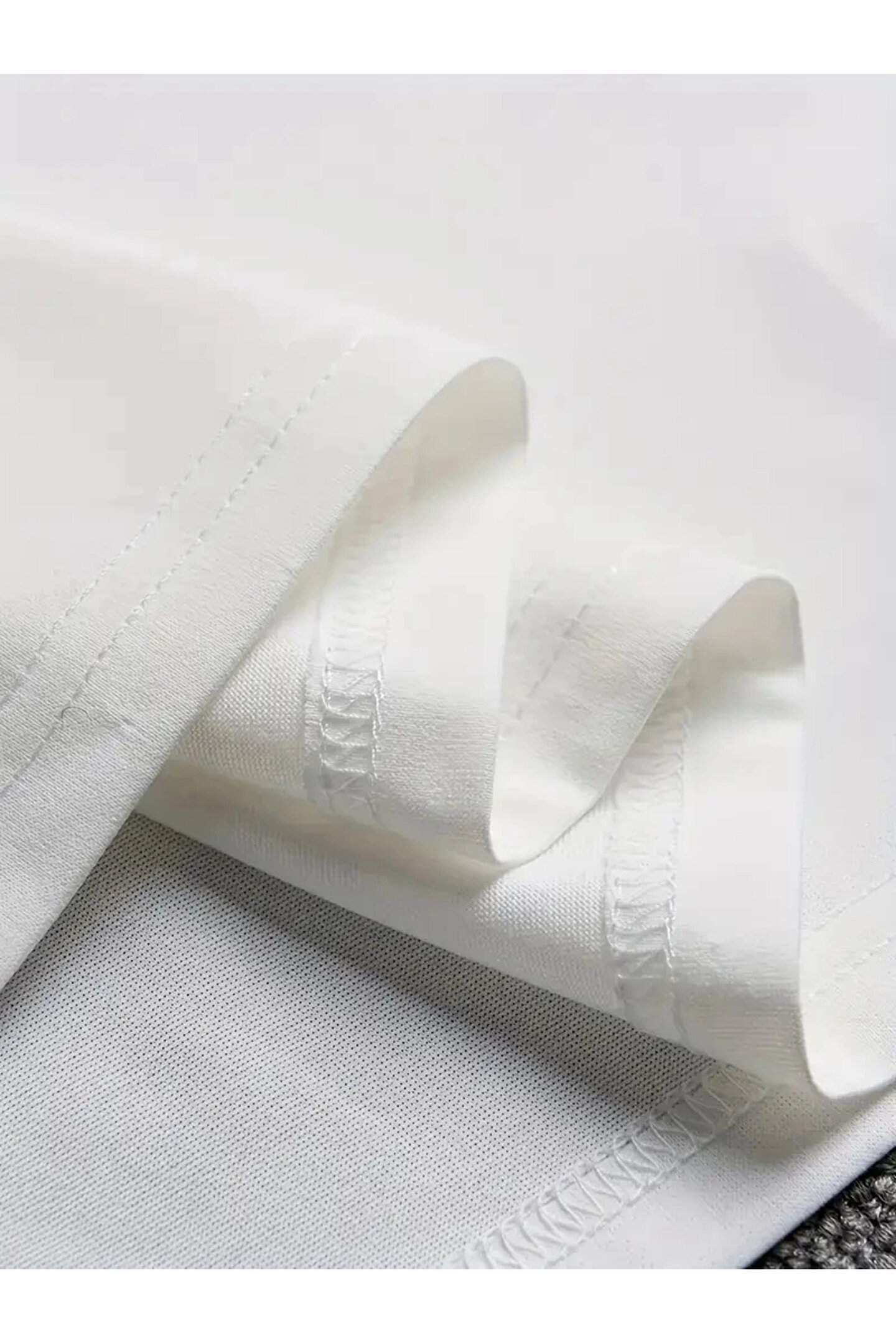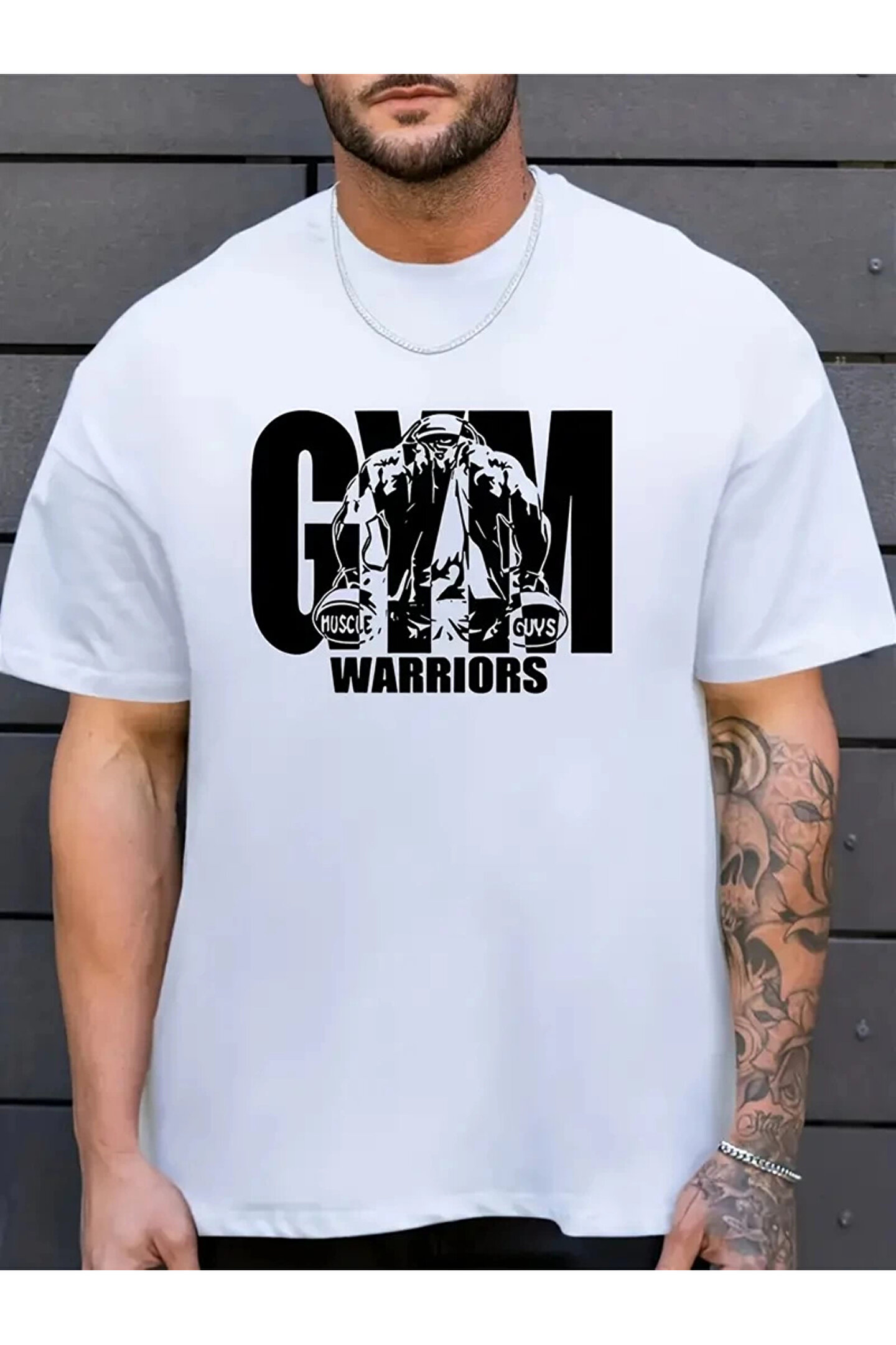 Megstill Sporda Günlük Hayata Giyilebilir GYM Baskılı Oversize Bisiklet Yaka Erkek T-shirt - Beyaz