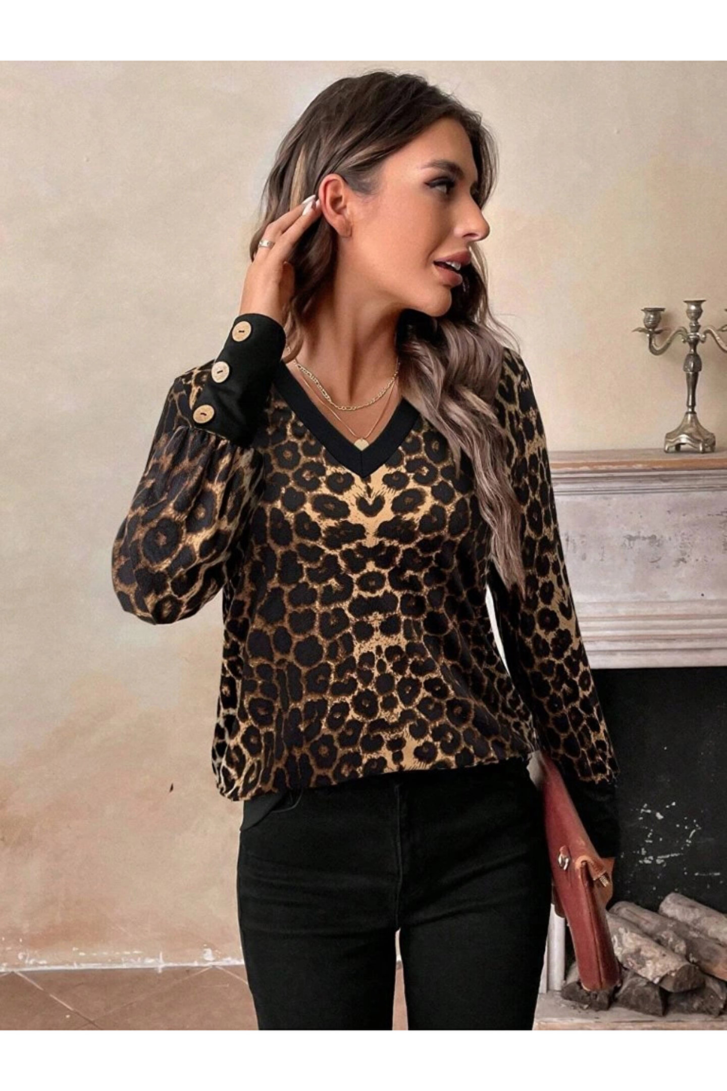 Meis Concept MDB Kadın Uzun Kollu V Yakalı Desenli Süprem Bluz