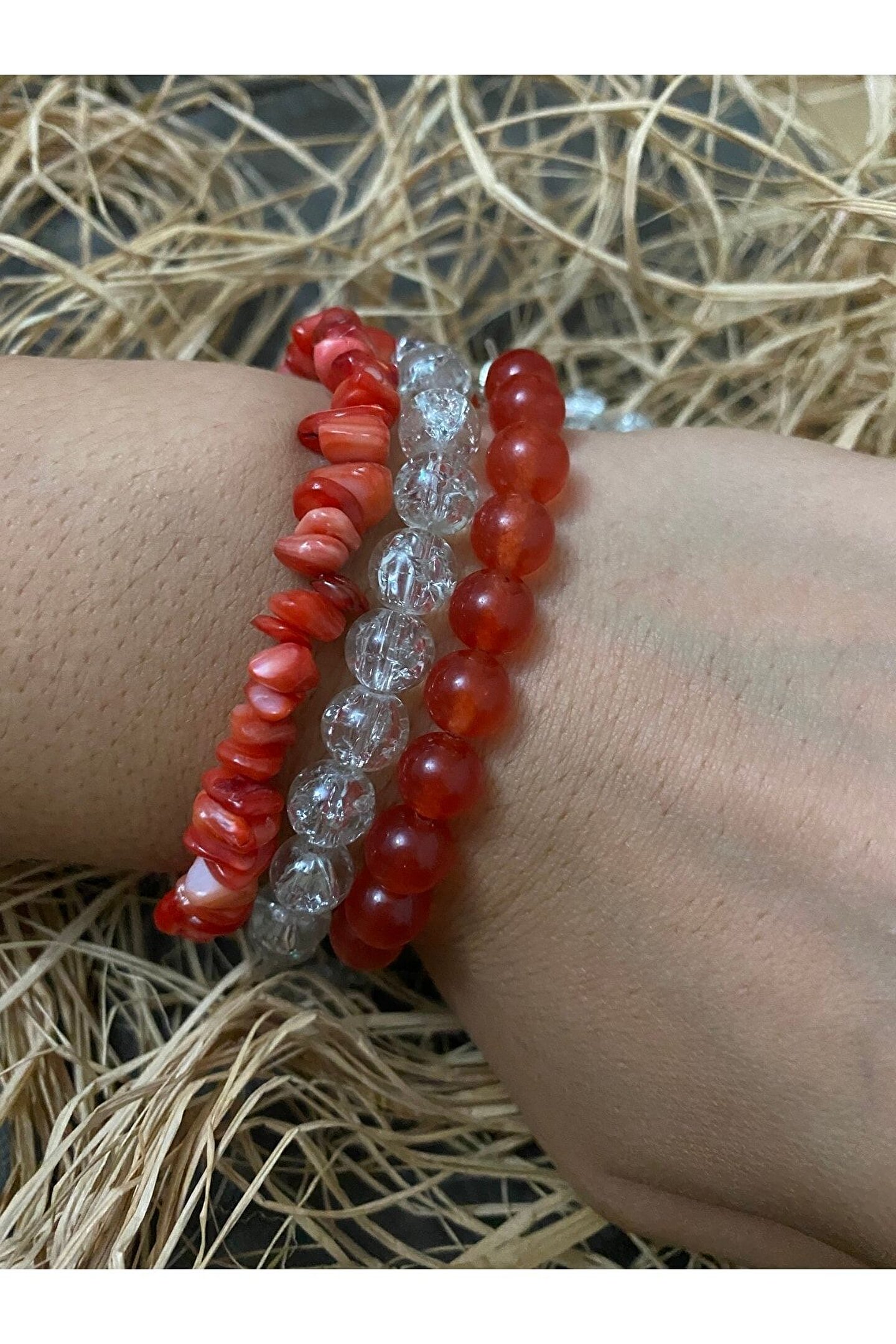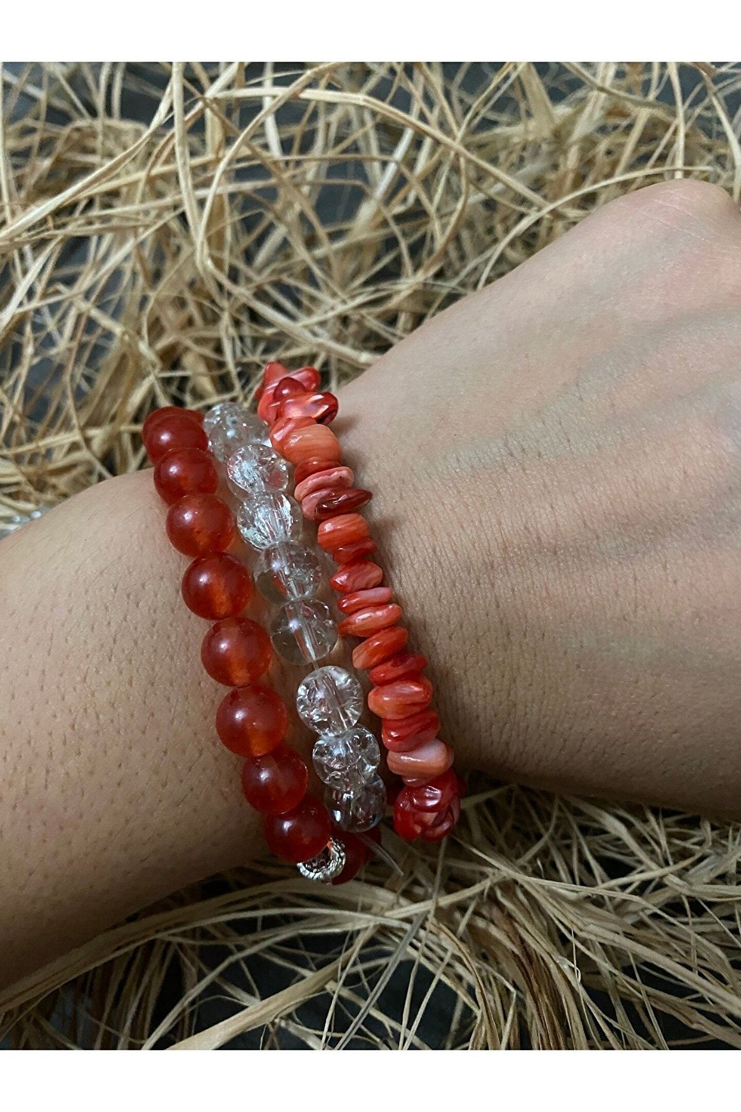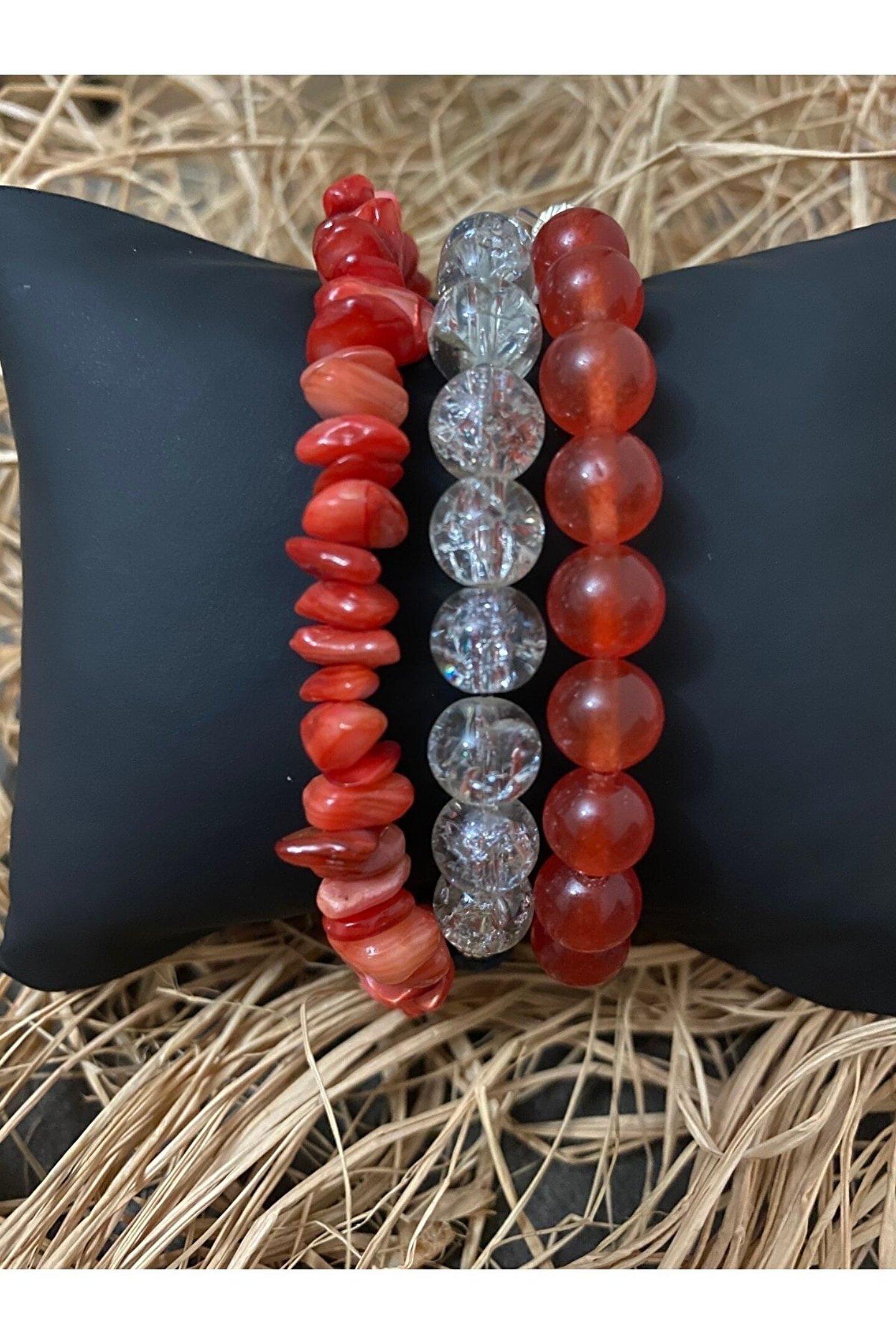 Dogal taş Kombin bileklik Necef Taşı Özellikleri ve Faydaları: Sindirim ve kan dolaşımı sistemini sağlıklı tutar. ; İçindeki suyun kişiye huzur ve ferahlık verdiğine inanılır. ; Her türlü olumsuz enerjiyi içine hapseder, bedeni ve zihni korur. ; Kullanan kişiye şans getirir. ; Ruhsal ve fiziksel dengeyi sağlar. ; Akik Taşı Faydaları Nelerdir? Kişiyi ruhsal açıdan korur. ; Strese karşı koruyucu etkisi vardır. ; İnsanı negatif enerjiden kurtarır. ; Cilt hastalıklarına iyi gelir. ; Bedeni güçlendirici etkisi vardır. ; Kendini ifade etmekte zorlananlara iyi gelir. ; Ağrıları azaltır. ; Taşıyan kişiyi tehlikelere karşı koruyucu etkisi vardır. ; Mercan Taşının Faydaları Kalbi ve dalağı kuvvetlendirir. ; Aile içinde ve arkadaşlar arasında saygınlığı güçlendirir. ; Kişinin ruhsal anlayışını güçlendirir. ; Konsantrasyon eksikliğini giderir. ; Saflığın ve dengenin korunmasını sağlar. ; Özellikle kırmızı ve pembemsi cinsi dikkat çekici olduğundan nazara karşı etkilidir.;