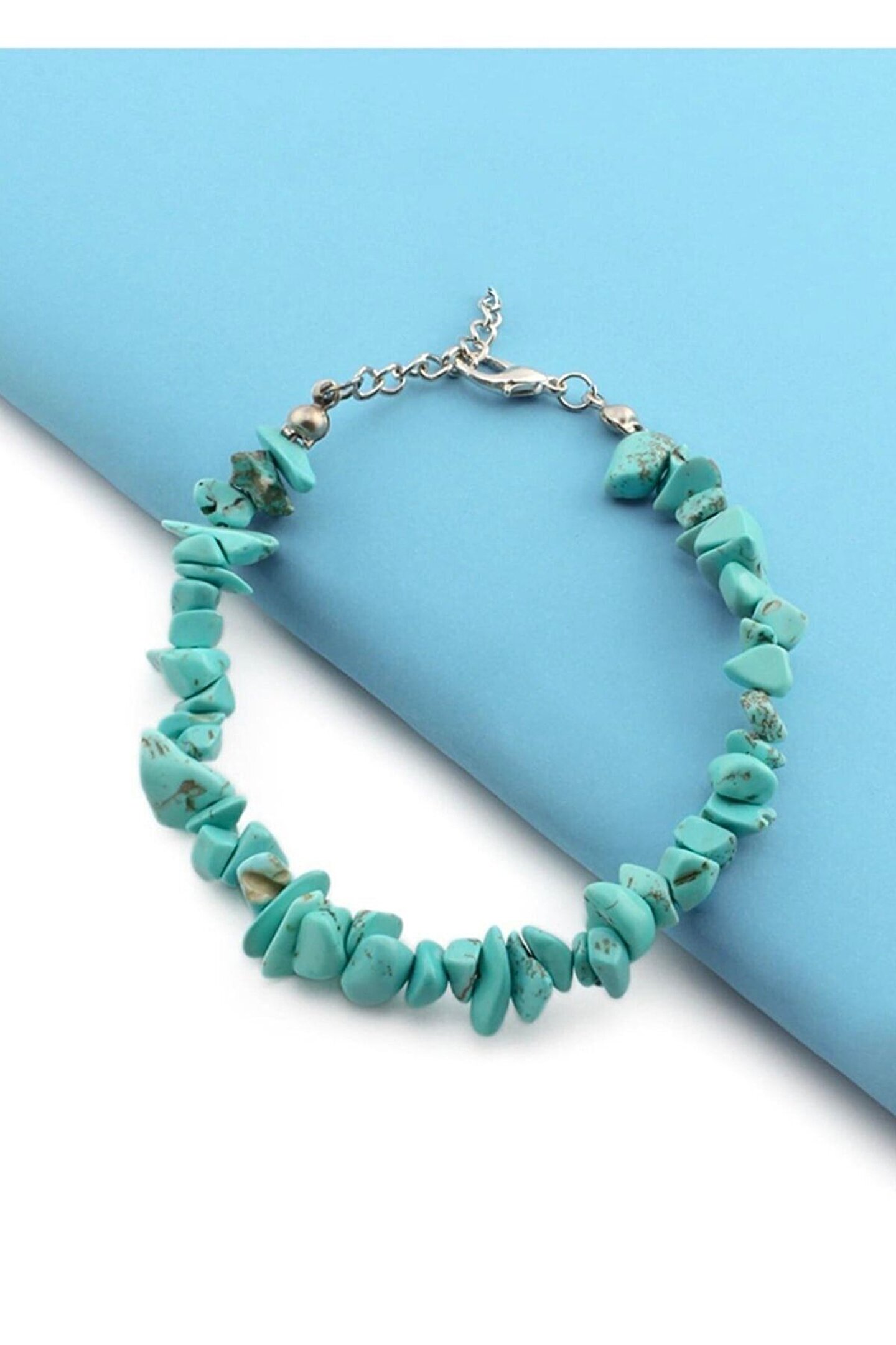 Doğal taş bileklik, doğanın sunduğu güzellikleri parmaklarınıza taşır.; Firuze taşı ile şansınızı arttıracak ve uğur getirecek bu bileklik, stilinizi tamamlar.; Özel tasarımıyla dikkat çeken bu bileklik, hem günlük kullanıma uygun hem de özel günlerde tercih edilebilir.; Doğal taş kullanımı sayesinde benzersiz ve özgün bir aksesuar deneyimi yaşatır.; Turkuaz rengiyle göz alıcı bir görünüm sağlar ve kıyafetlerinizi tamamlayıcı bir unsur olarak öne çıkarır.;