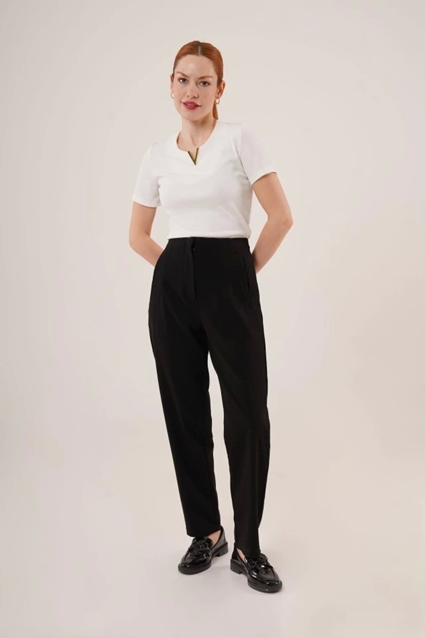 Melek Moda Çift Pens Detaylı iyah Pantolon