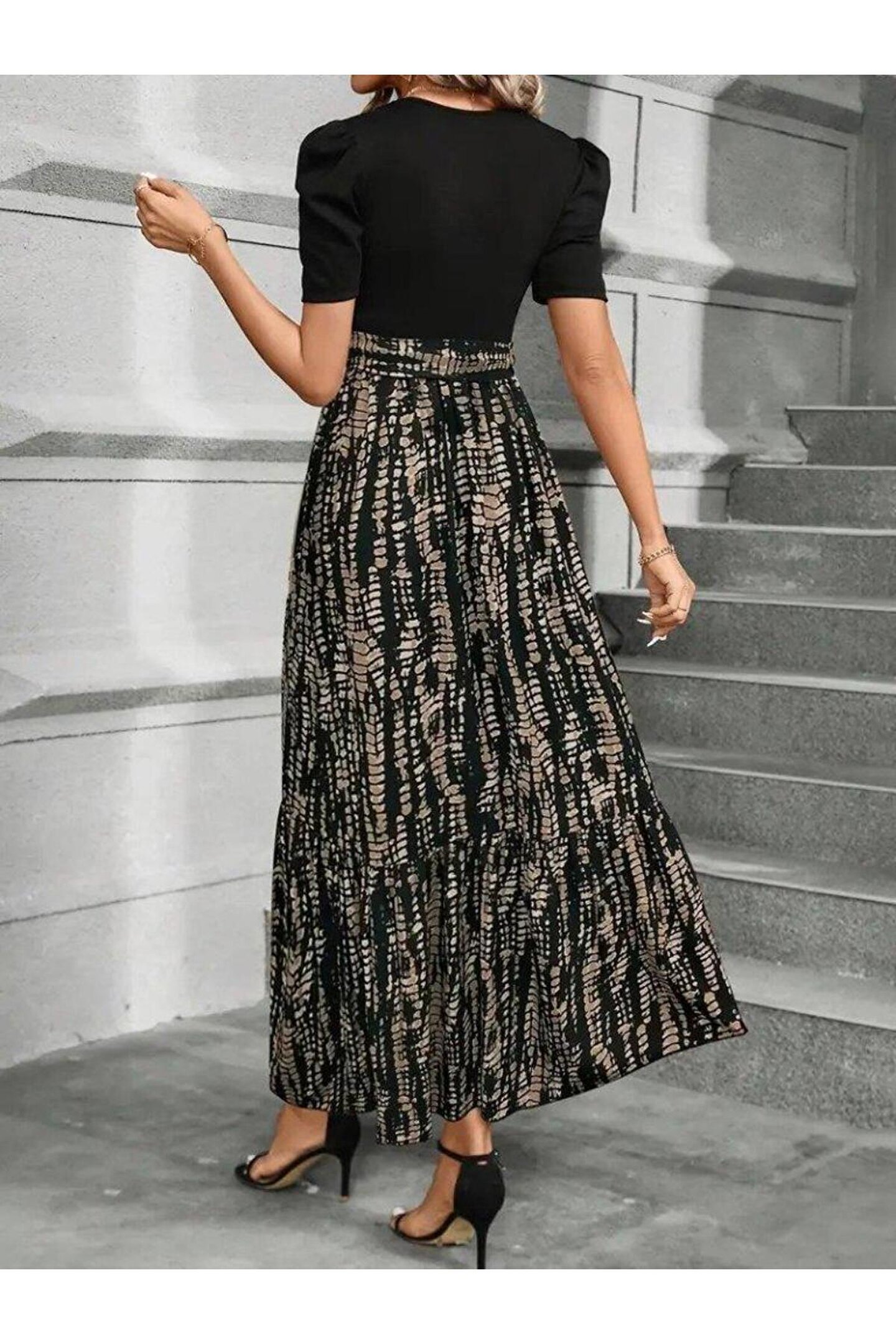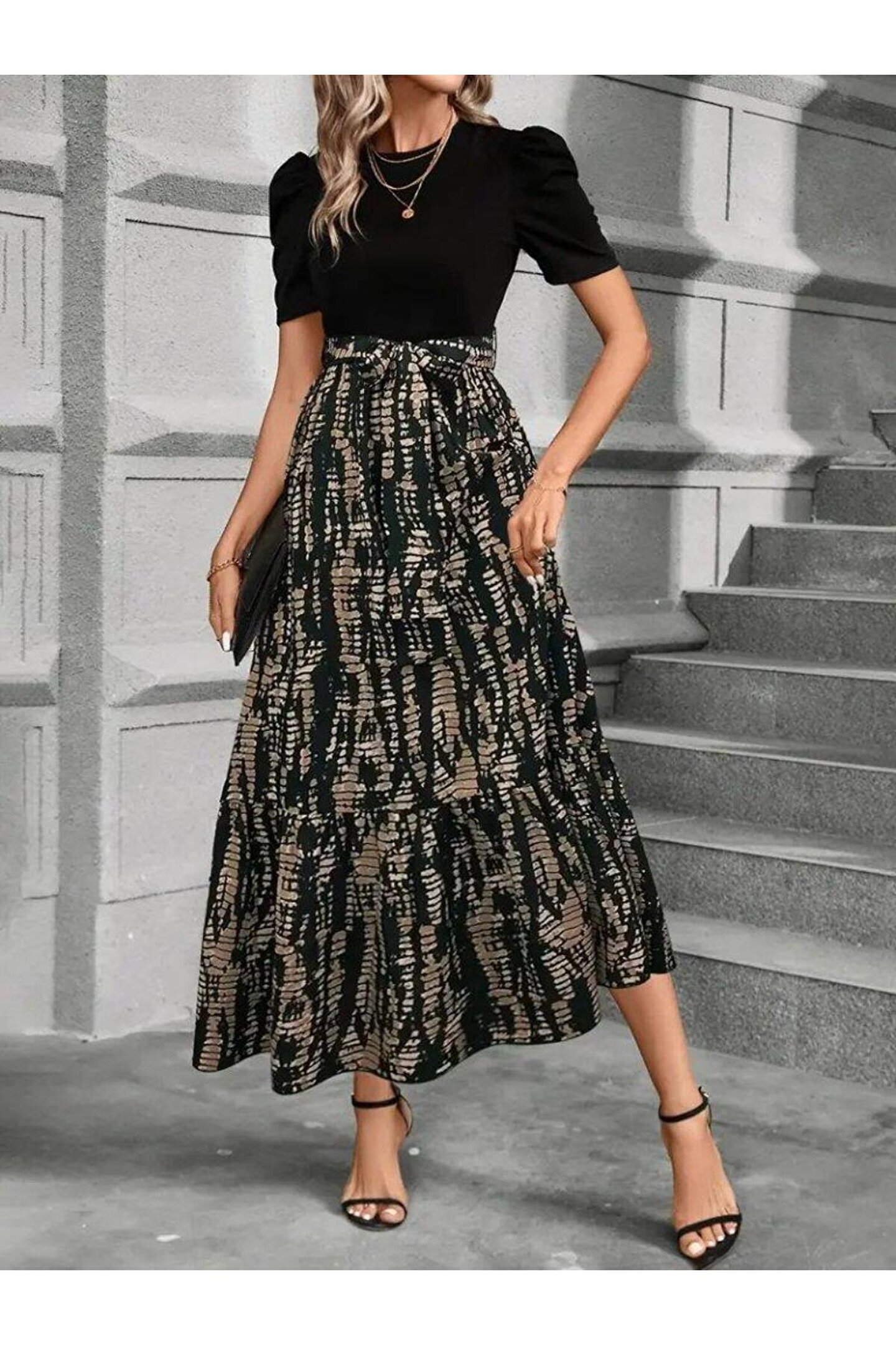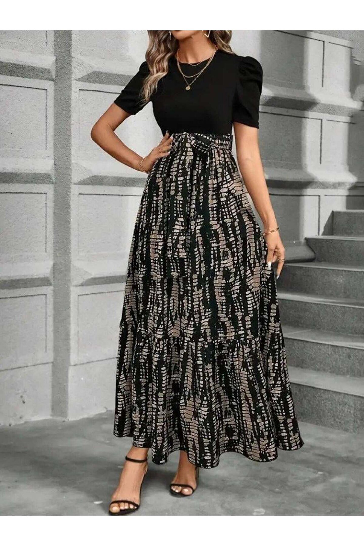 Kadın Kısa Kollu Bisiklet Yaka üst Ithal Krep Alt Süprem Maksi Boy Elbise