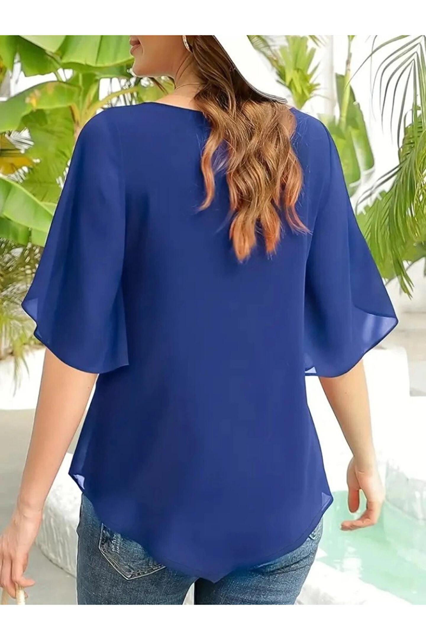 Melek Moda Kadın Kısa Yırtmaç Kollu Yuvarlak Yaka şifon Bluz