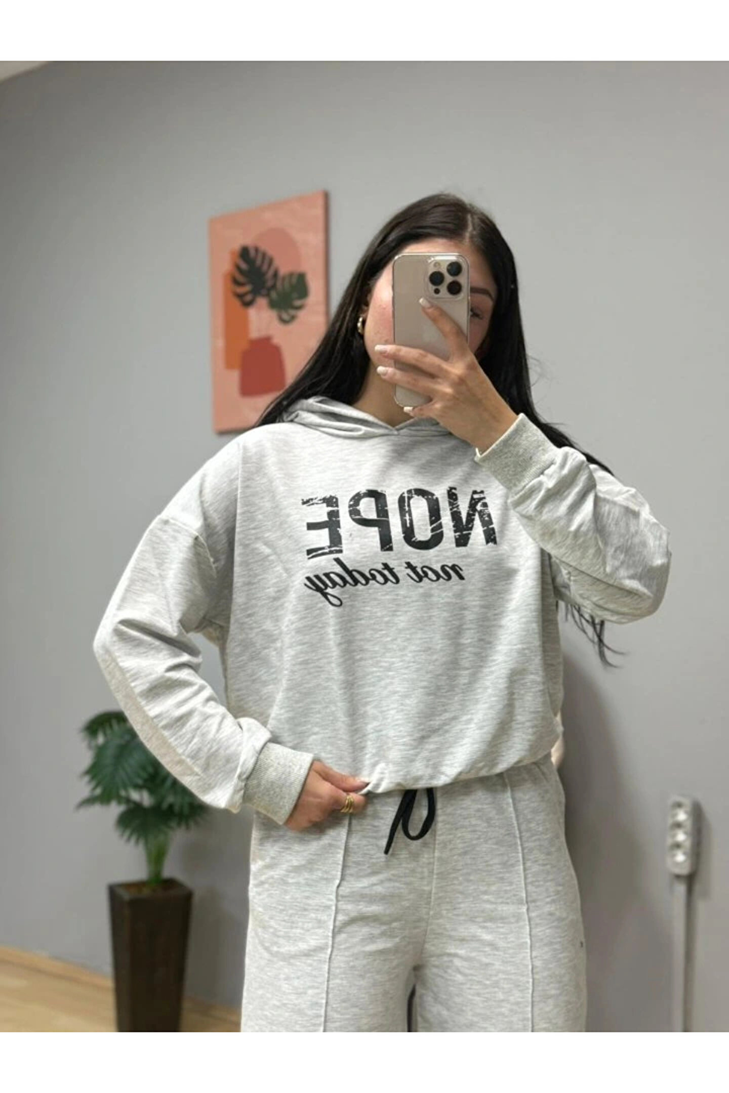 Kadın Uzun Kollu Nope Baskılı Beli Ribanalı Ikili Takım