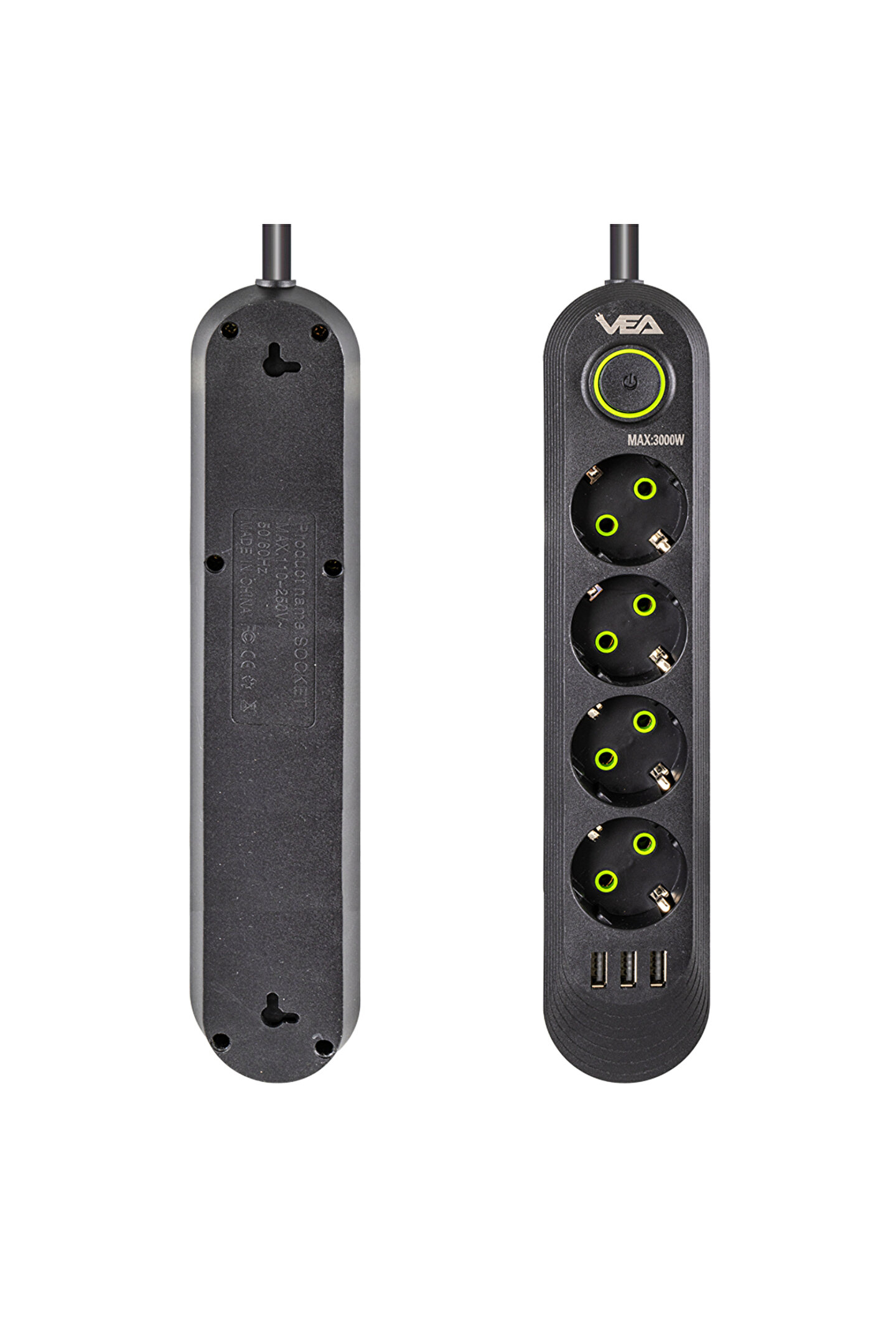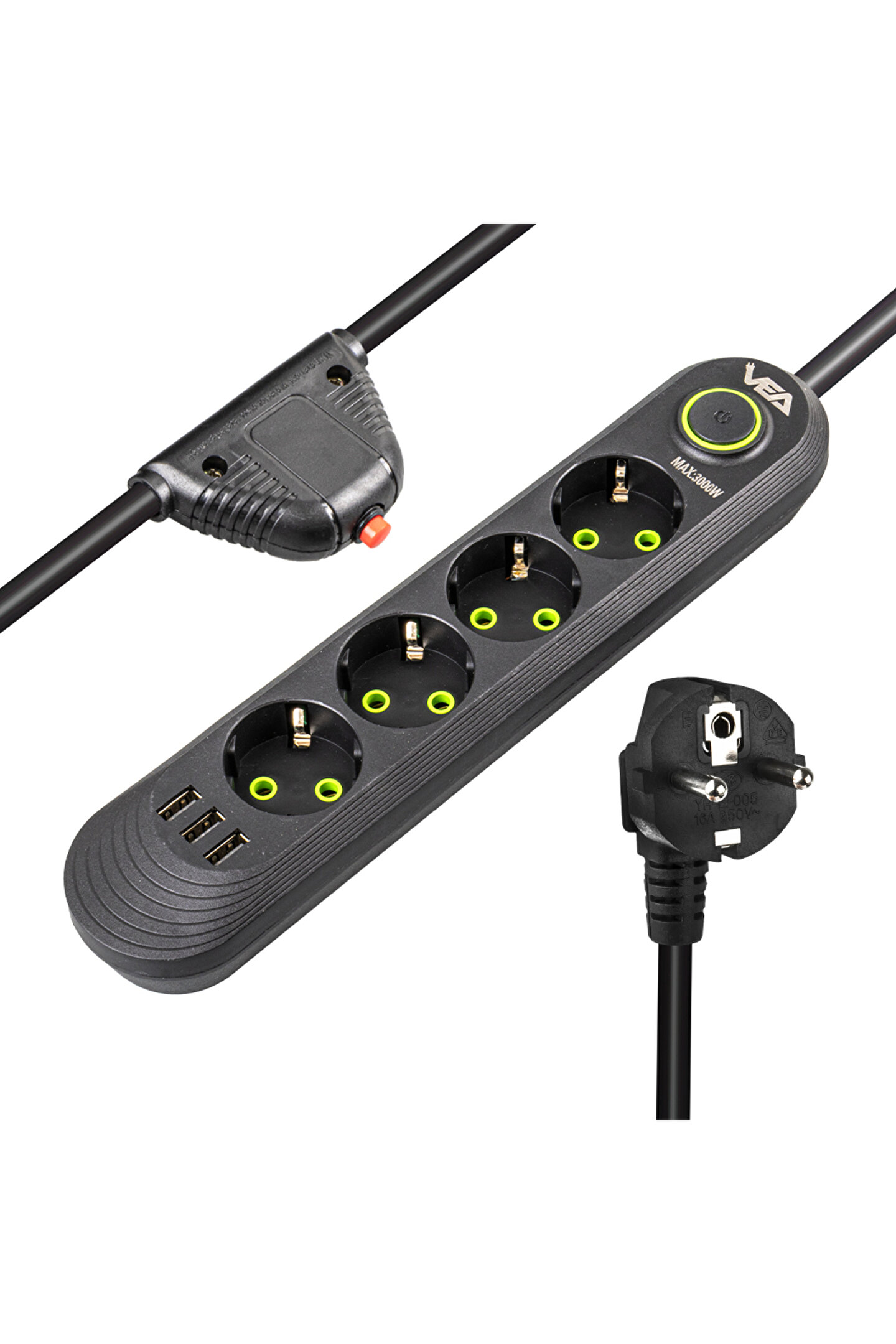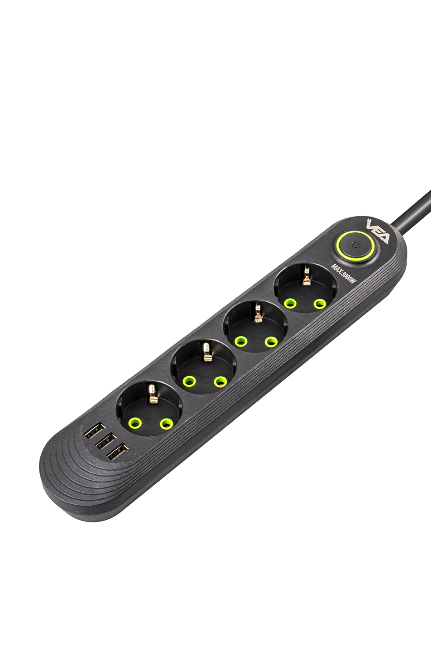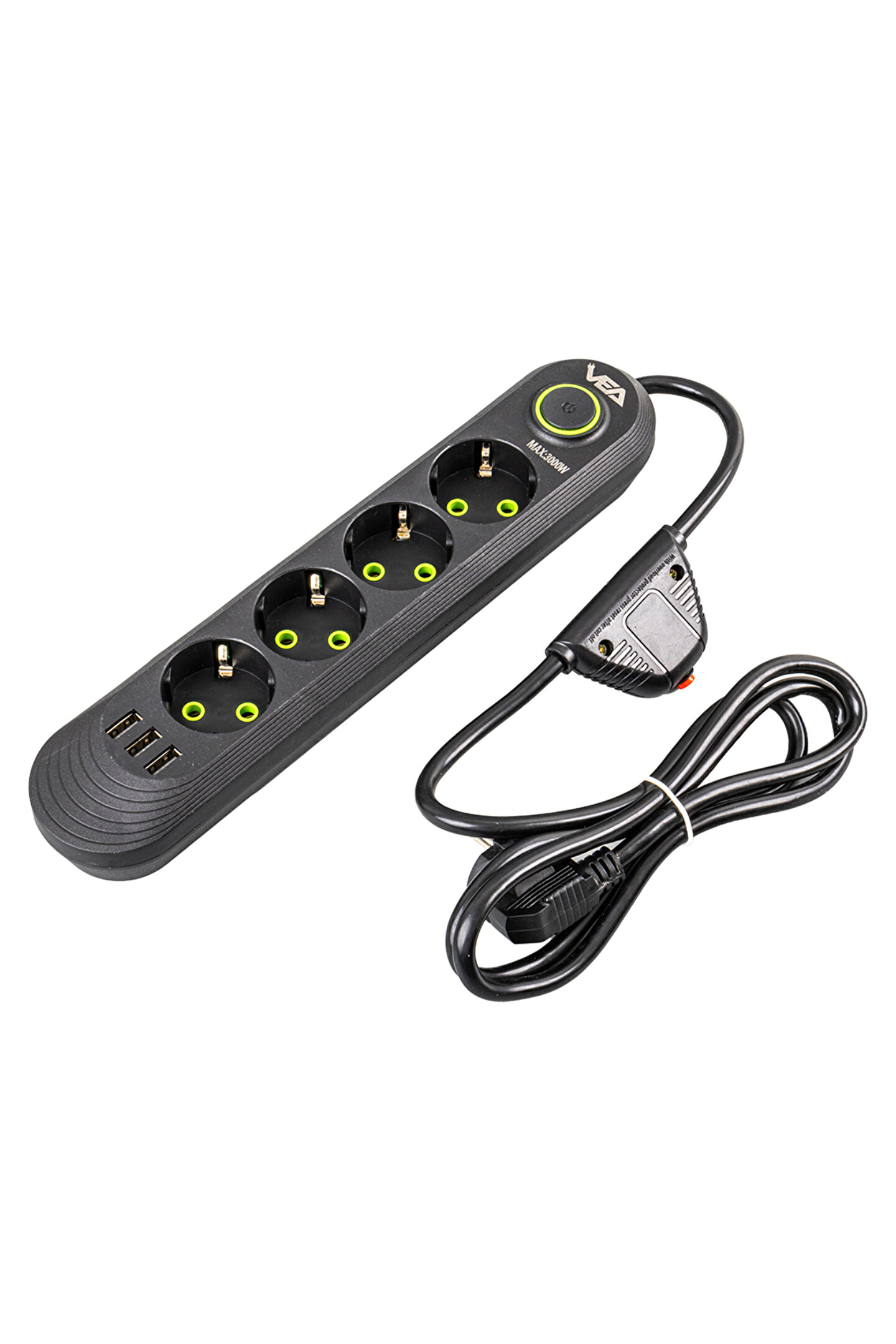 va-21559 4lü 1.5 metre kablo shopzumlu 3 usbli siyah shopzum akim korumali priz