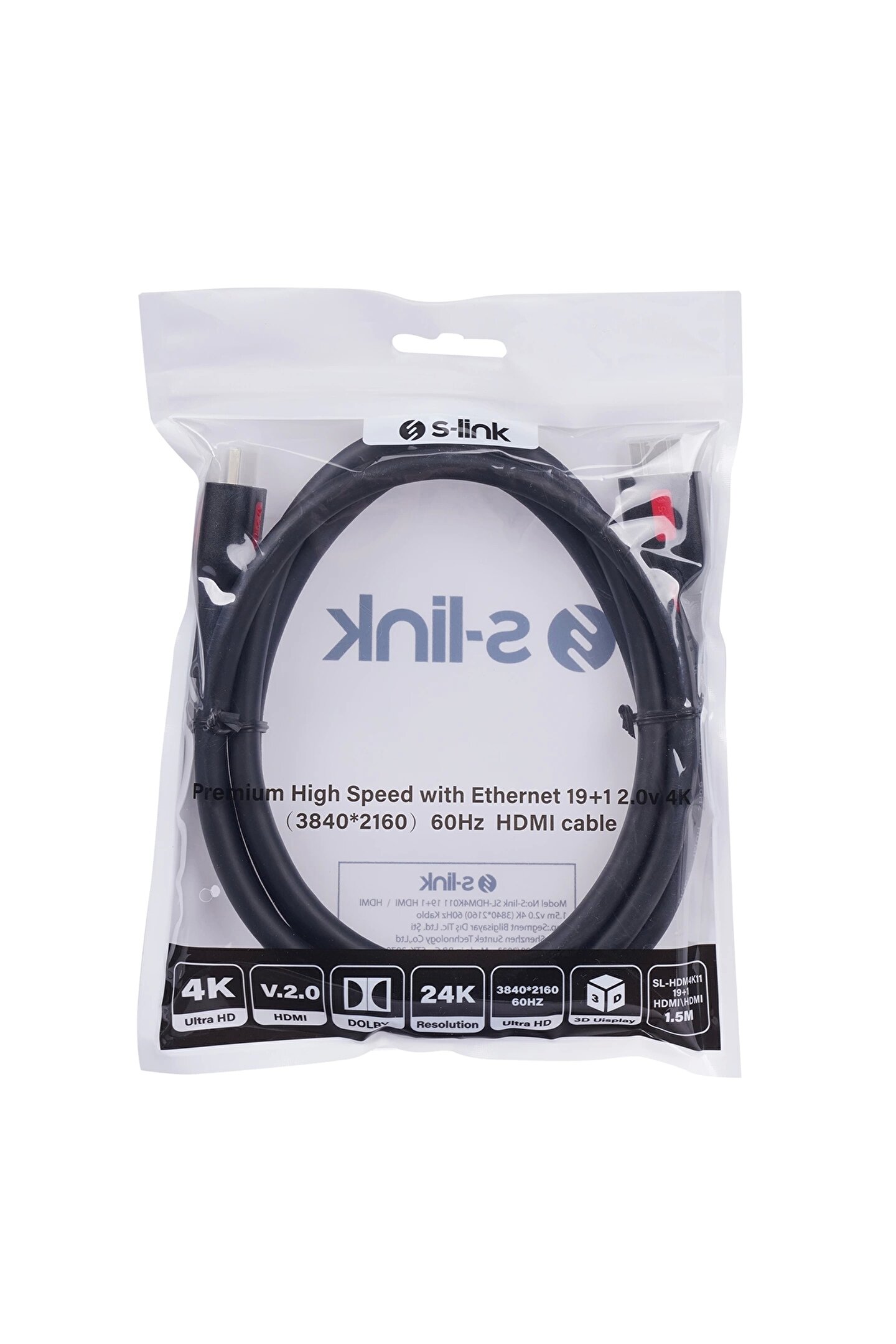 SL-HDM4K011 19+1 HDMI to HDMI 1.5mt v2.0 4K (3840-2160) 60Hz Kablo