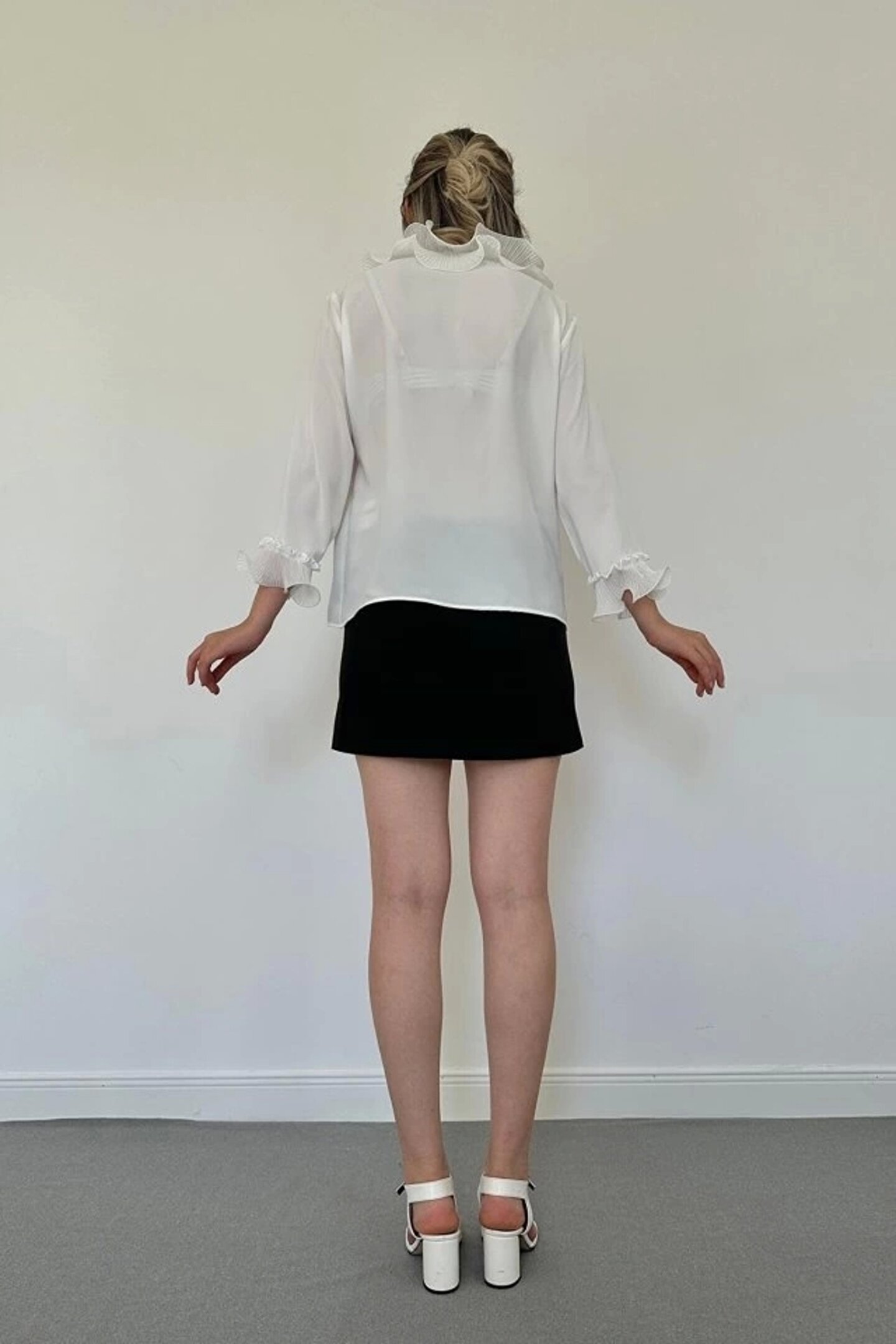 Beyaz Yakası Volanlı Gömlek