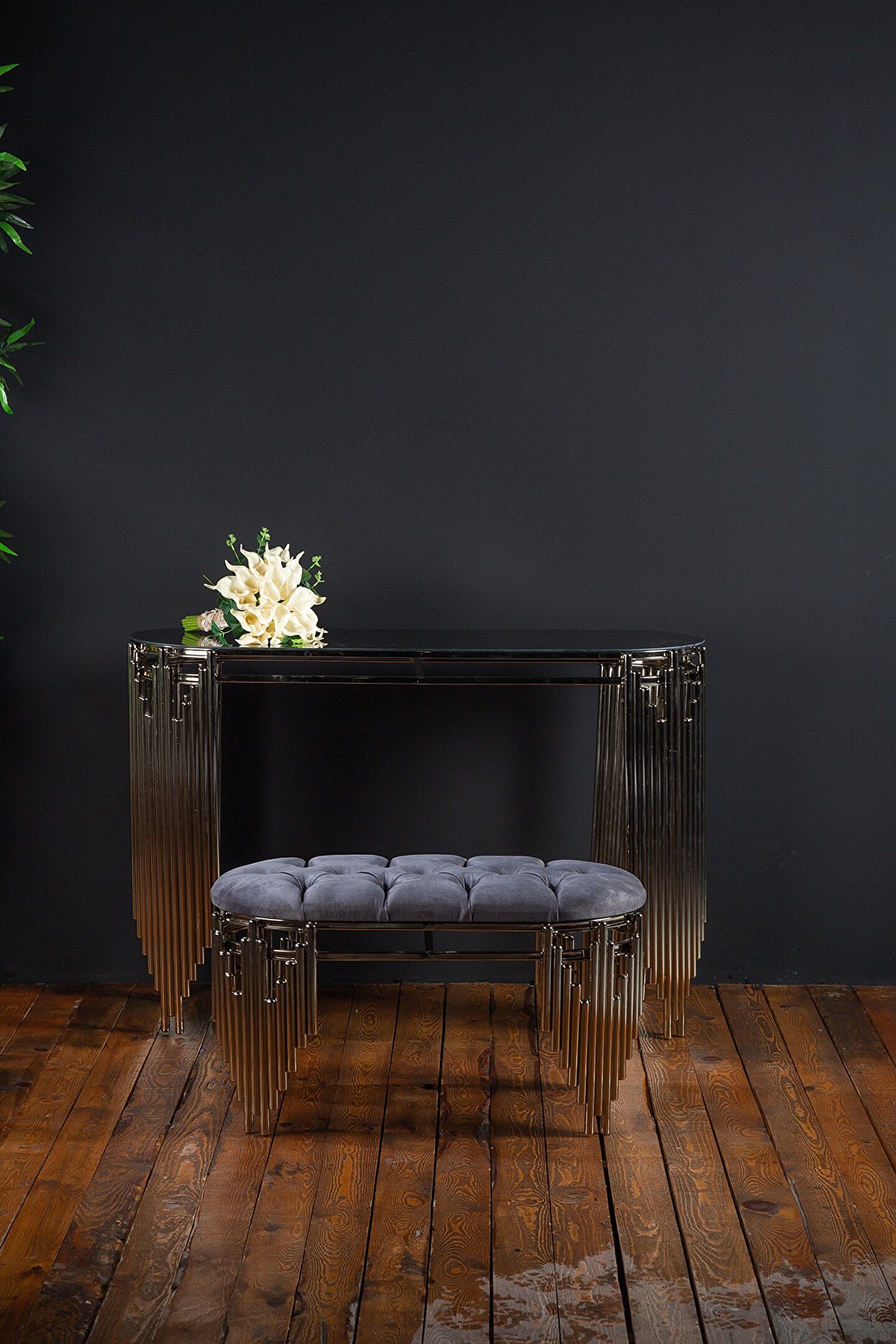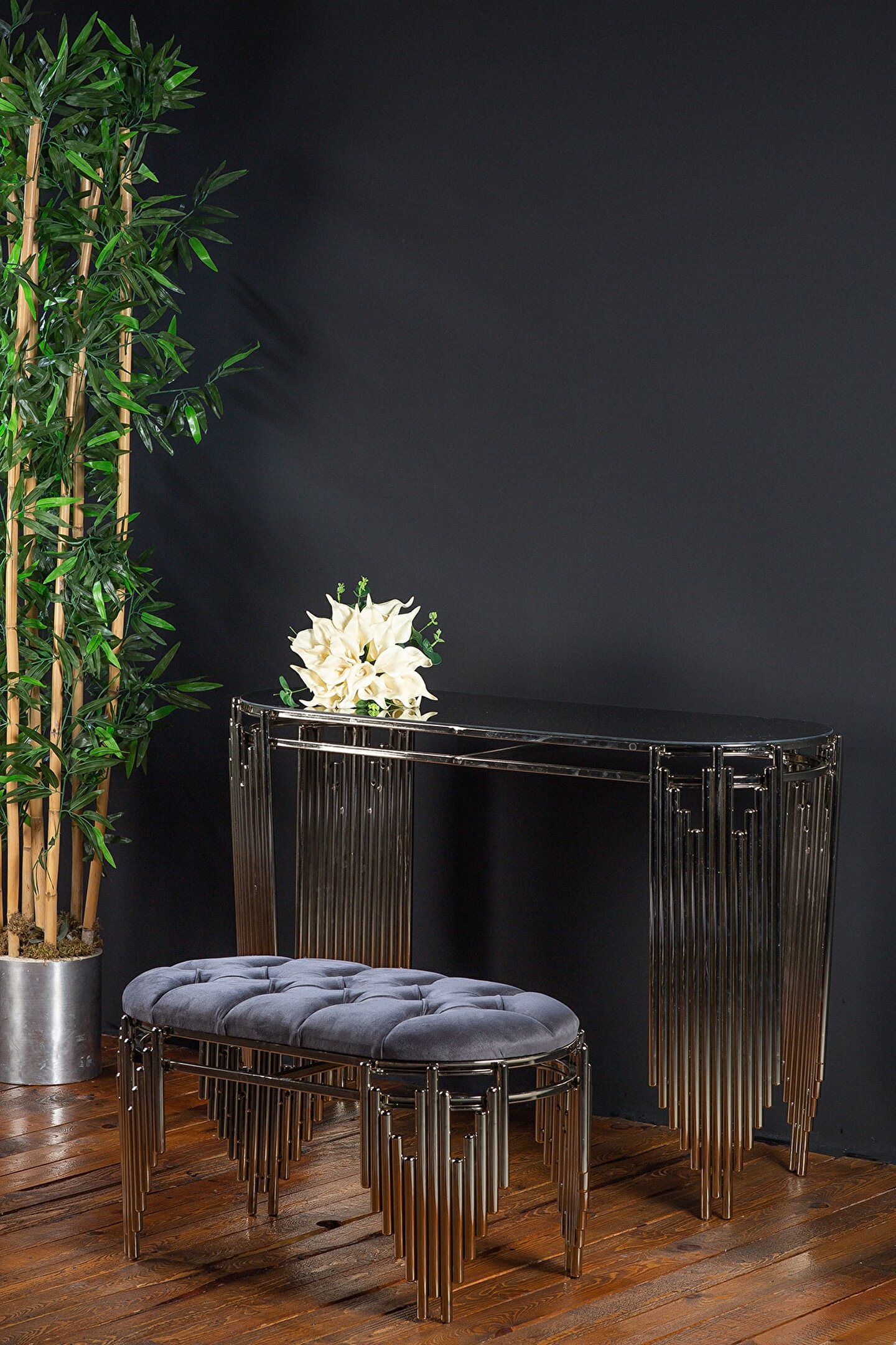 GÜMÜŞ dresuar takımımız dresuar 120 cm uzunluk 80 cm yükseklik 42 cm genişlik ölçülerindedir. Paslanma ve kararma yaşanmaz.Lak kaplama yapılmaktadır.Puf 80 cm uzunluk 45 cm genişlik 45 cm yükseklik ölçülerindedir. Evlerinizin ve ofislerinizin girişlerine fark yaratacak güzellik de bir ürün ; Güzel günler de kullanın. ; Puf çeşitlerimiz siyah, krem ve gridir. 140 cm uzunluğunda dresuarımız stoklarımızda mevcuttur.Diğer ölçüler için lütfen satıcı ile iletişime geçiniz. ;