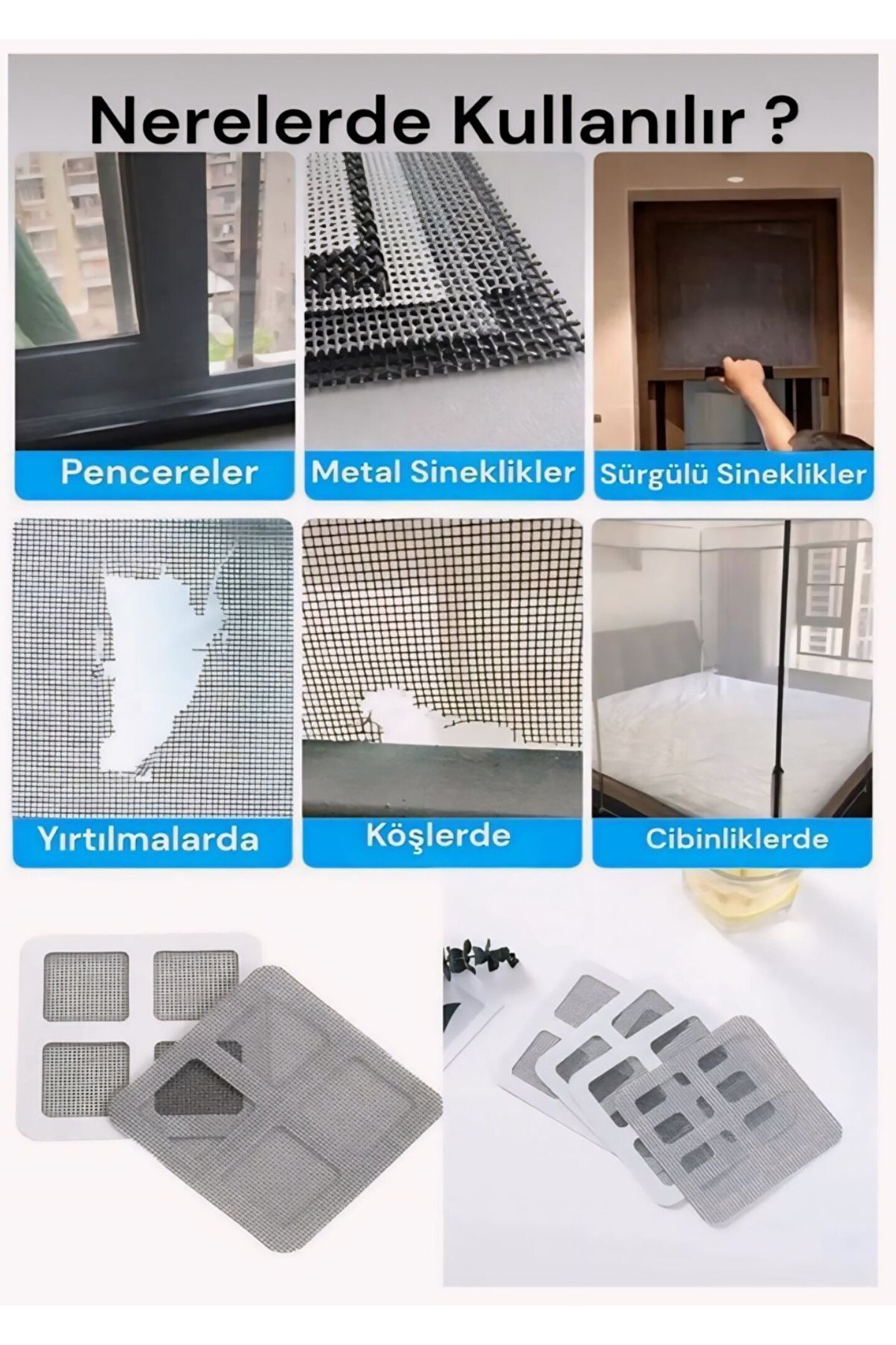TÜL SİNEKLİK YAMASI 40 PARÇA Ürün, tül malzemeden üretilmiş olup sinekliklerdeki yırtıkları tamir etmek için tasarlanmıştır. ; Her bir parça, dört eşit parçaya kesilebilen esnek bir yapıya sahiptir, böylece kullanıcılar istedikleri boyutta yamalar oluşturabilirler. ; Ürünün altında bulunan yapışkanlar sayesinde, sinekliklerde oluşan yırtıkları hızlı ve etkili bir şekilde onarabilirsiniz. ; Dayanıklı malzemesi ve kolay uygulanabilirliği sayesinde, sinekliklerin ömrünü uzatırken aynı zamanda istenmeyen böceklerin girişini engeller. ; Evlerde, kamusal alanlarda ve iş yerlerinde kullanıma uygundur. ; Paket İçeriği 40 parça sineklik yaması;