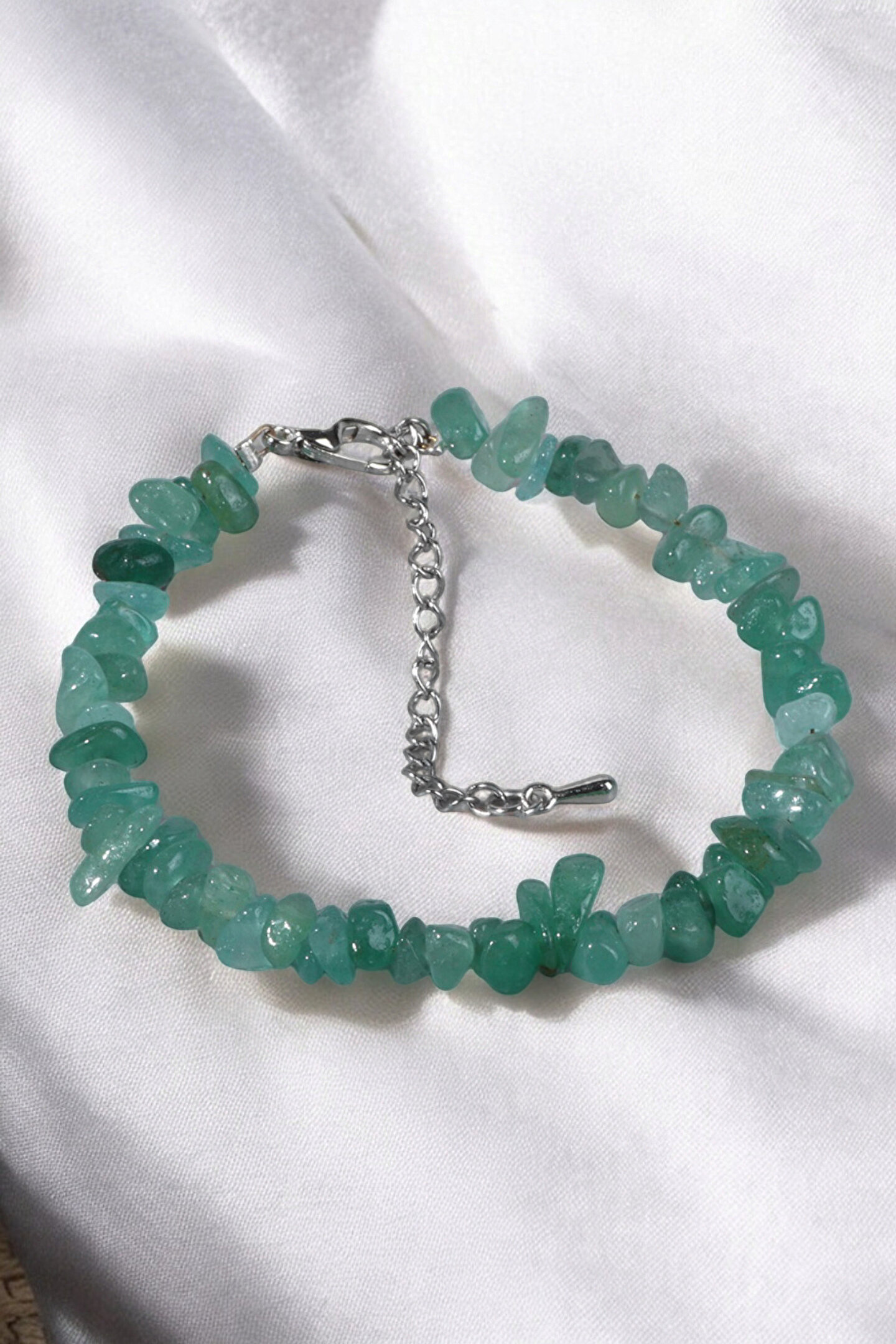 Aventurin taşı bileklik, zarif ve şık tasarımıyla dikkat çeker; her bilek boyutuna uyum sağlayan esnek misina yapısı sayesinde rahat bir kullanım sunar; Doğal taş materyaliyle öne çıkan bu bileklik, hem estetik hem de doğallık arayanlar için ideal bir aksesuardır; Aventurin taşı, kırıktaş kolye ve firuze taşı gibi diğer doğal taşlarla birlikte, bilekliğe benzersiz bir karakter kazandırır; Her bileğe uygun esnek misina yapısı, gün boyu konforlu bir deneyim sağlar ve hareket özgürlüğünüzü kısıtlamaz;