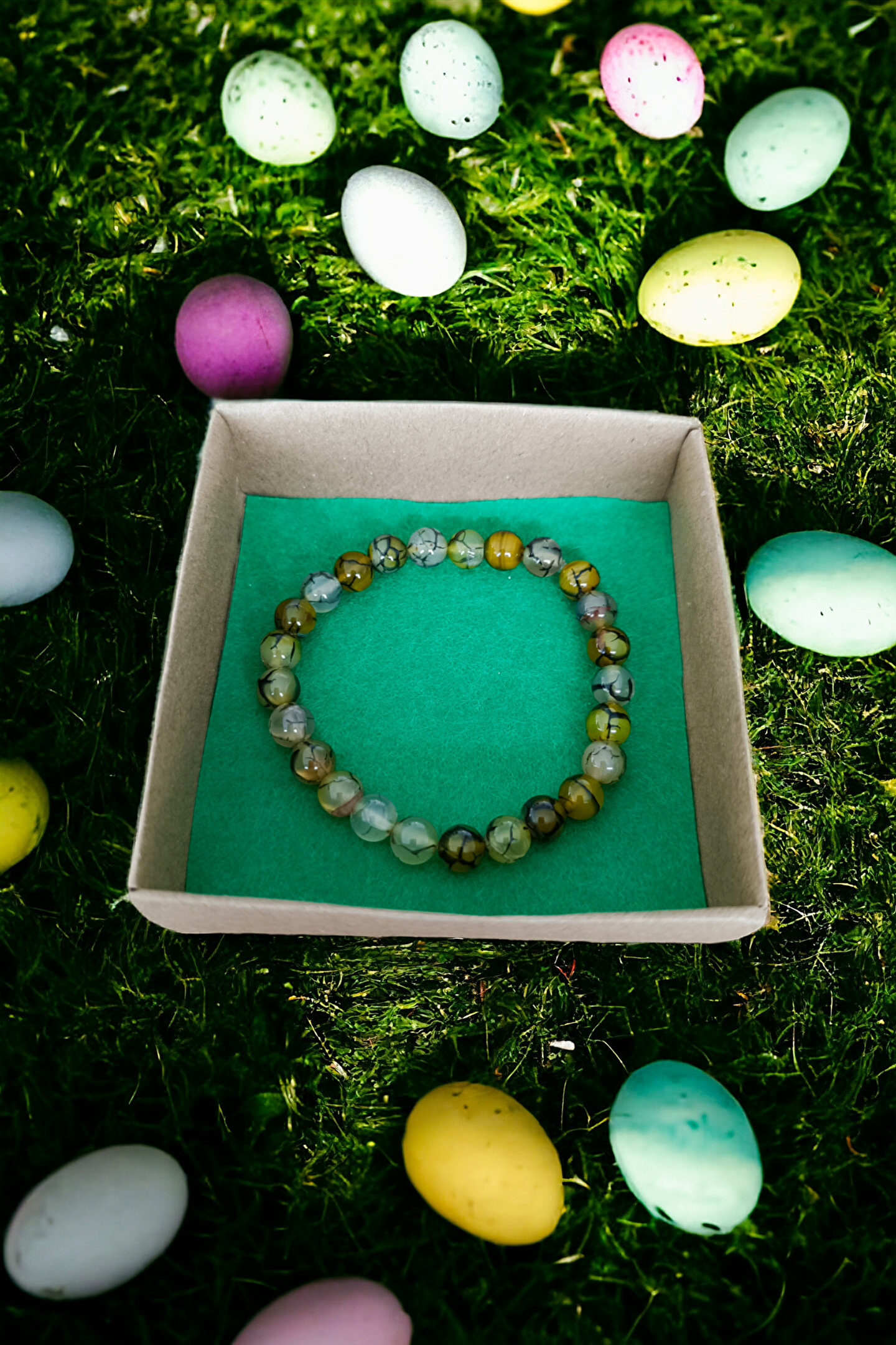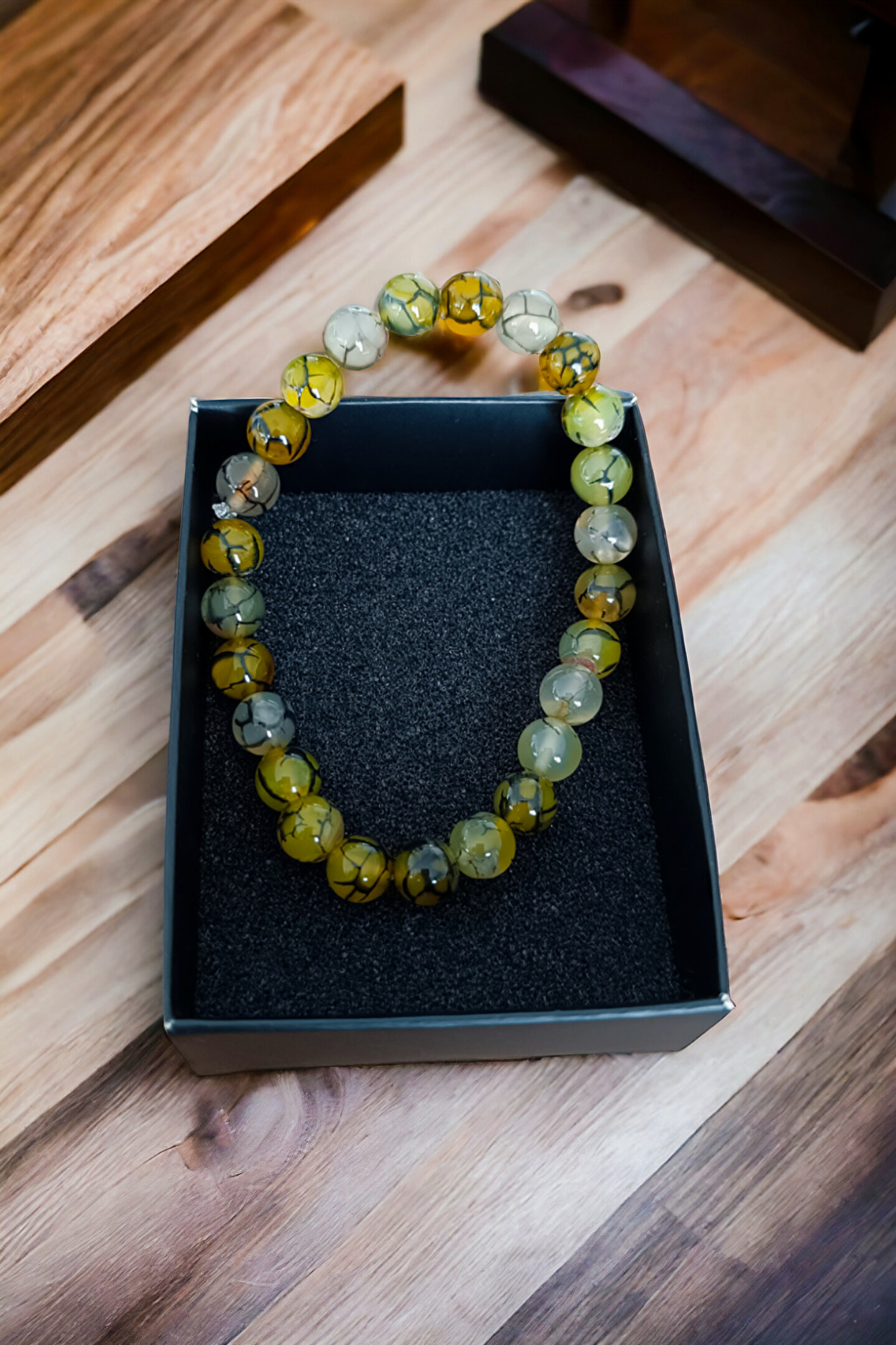 Tüm Taşlarımız Doğal Orijinal GerçekTaştır Piyasada Sentetik boncuk Taşlar ile lütfen Mukayese etmeyin Tüm ürünler orijinal Sertifika ilegönderilir Faturanız kesilir Sisteme işlenir ; Taşlar : Sarı Desenli Akik Taşı ; Kesim: Normal kesim model ; Taş boyutu : 8 mm ; Taş sayısı : Bedenlere göre değişim olur ; Aparat:--- ; Metal: ---- ; Görüntü: Resim Ortalama 20-21 cm göre çekilmiştirbilek yapınıza göre ; ayarlanacak modelde taş +artı yada - eksi olabilir Bileklik ölçüsü: 16-17 cm - 18-19 cm -20-21 cm - 22-23 cm ; Sargı: 1 mm misina ipi Kalite: Doğaltaşlar ; Ürün içeriği: bileklik + sertifika +yedek misina ; Ambalajı: Seçenekleri Mevcuttur ; Paket içeriği : 1 adet bileklik + 20-25cm uzunluğunda1 adet yedek misine ; İp: Esnek uzayıp kısalabilen misina herbileğe uyum sağlar bileği sıkmaz ; Ayrıca yedek misina gönderilmektedirbileklik bilek yapınıza göre yeniden tasarlayabilirsiniz;