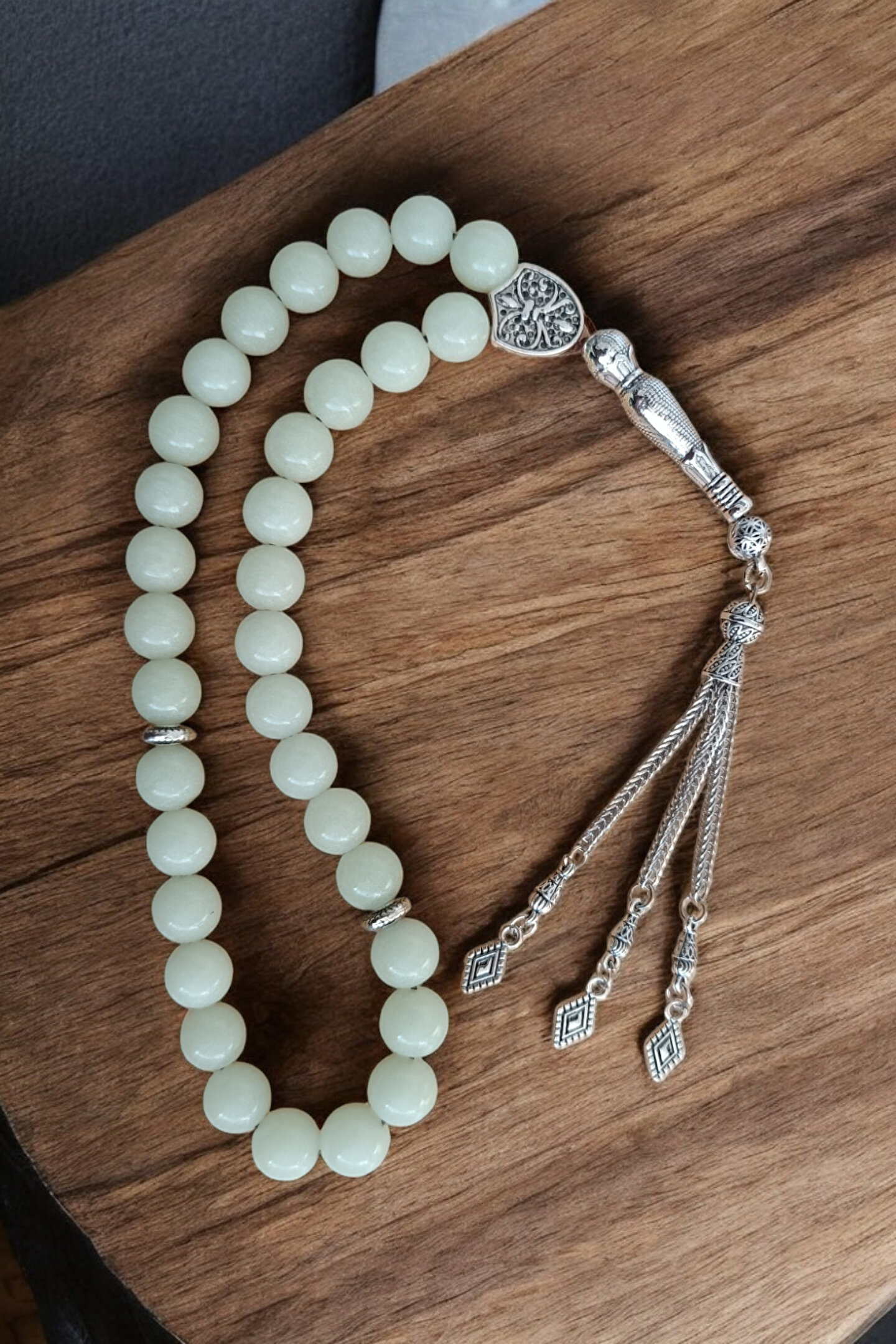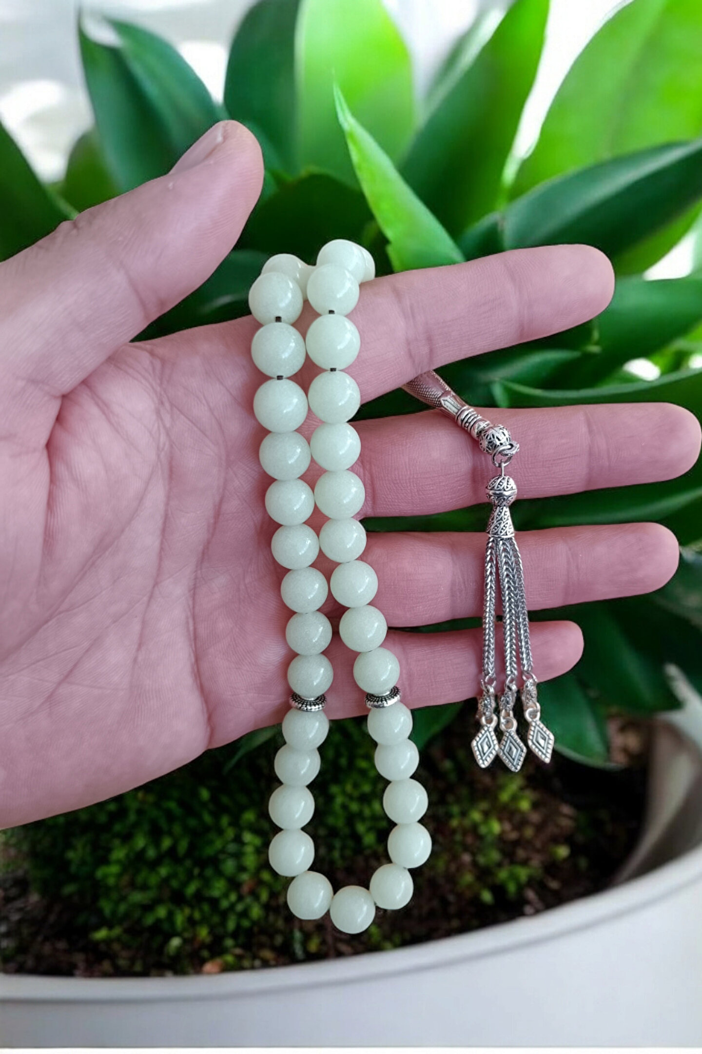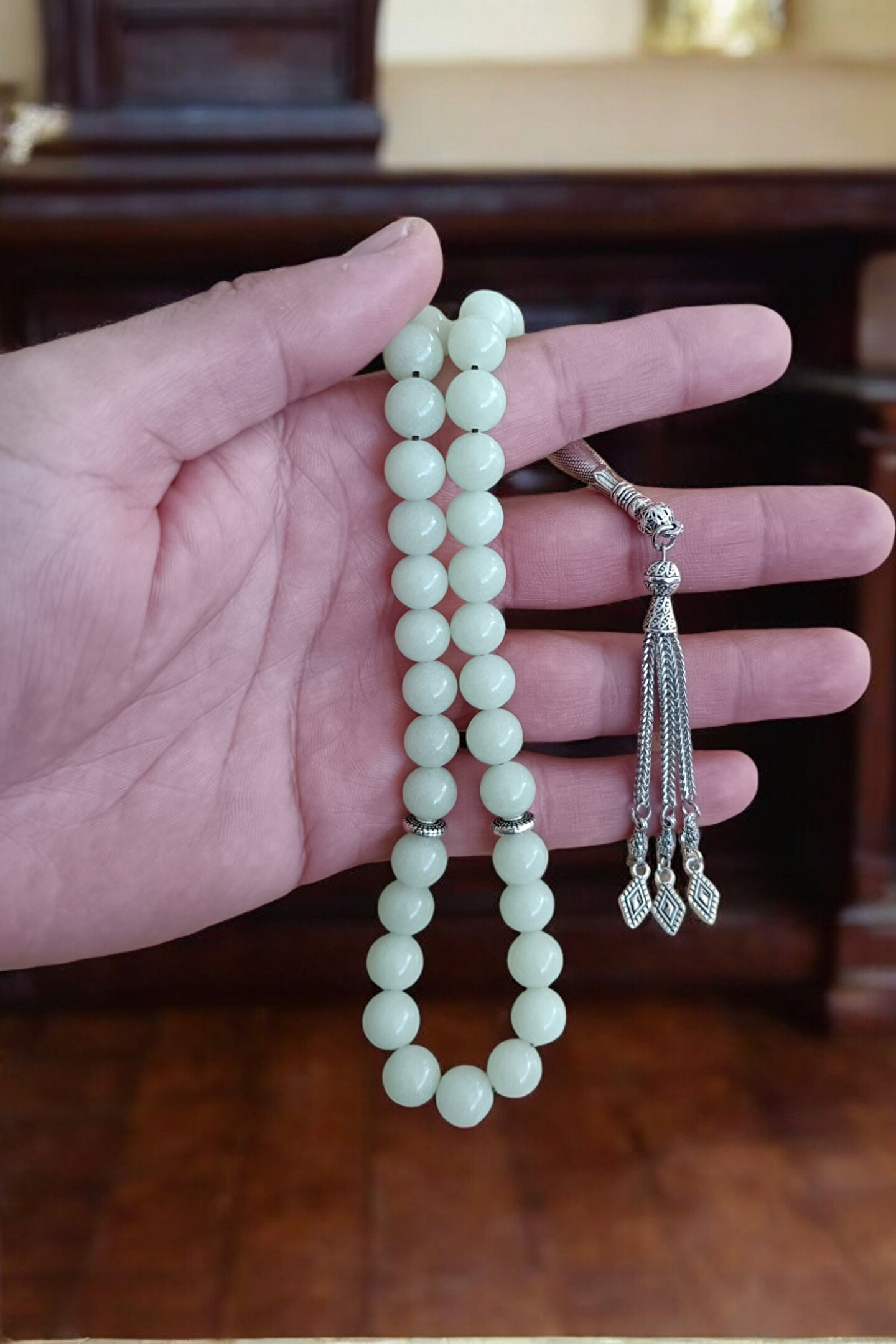 - Orijinal doğal taş kullanılarak üretilmiş, Fosfor Taşı tesbih, şıklığı ve doğallığı bir arada sunar.; 10 mm Büyük boy Tesbih - 33'lük tesbih seti, her bir bileklikte 33 adet Fosfor Taşı ile tasarlanmıştır ve bu sayede hem estetik hem de manevi bir anlam taşır.; - Gerçek hakiki doğal taş kullanılarak üretilen bu tesbih, uzun ömürlü ve dayanıklı yapısıyla dikkat çeker.; - Sertifikalı doğal taş kalitesiyle öne çıkan bu ürün, Mga Doğaltaş Tasarım imzasını taşır ve kalite standartlarına uygun olarak üretilmiştir.; - Doğal taş görünümüyle dikkat çeken deseni sayesinde, her tür kıyafetle kolayca uyum sağlar ve zarif bir aksesuar olarak kullanılabilir.; - Tesbih Uzunluk : 30 cm imame uzunluk 3,5 cm Taş Boyutu: 1.00 cm 3 Püsküllü, Özel Sağlam Tesbih ipi ile dizilmiştir.; - Tüm Resimler Ve Tasarımlar MGA Doğal Taş'a aittir