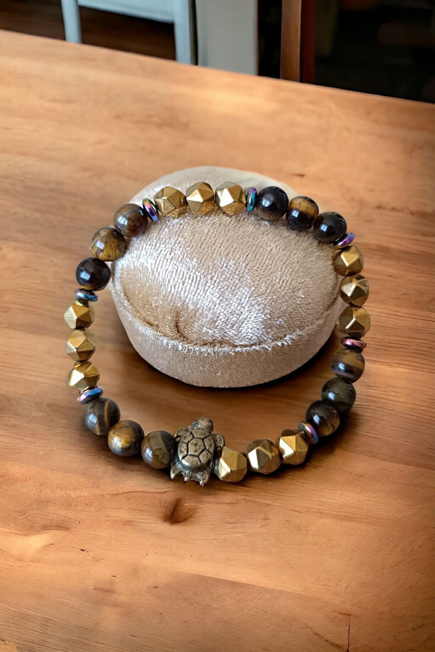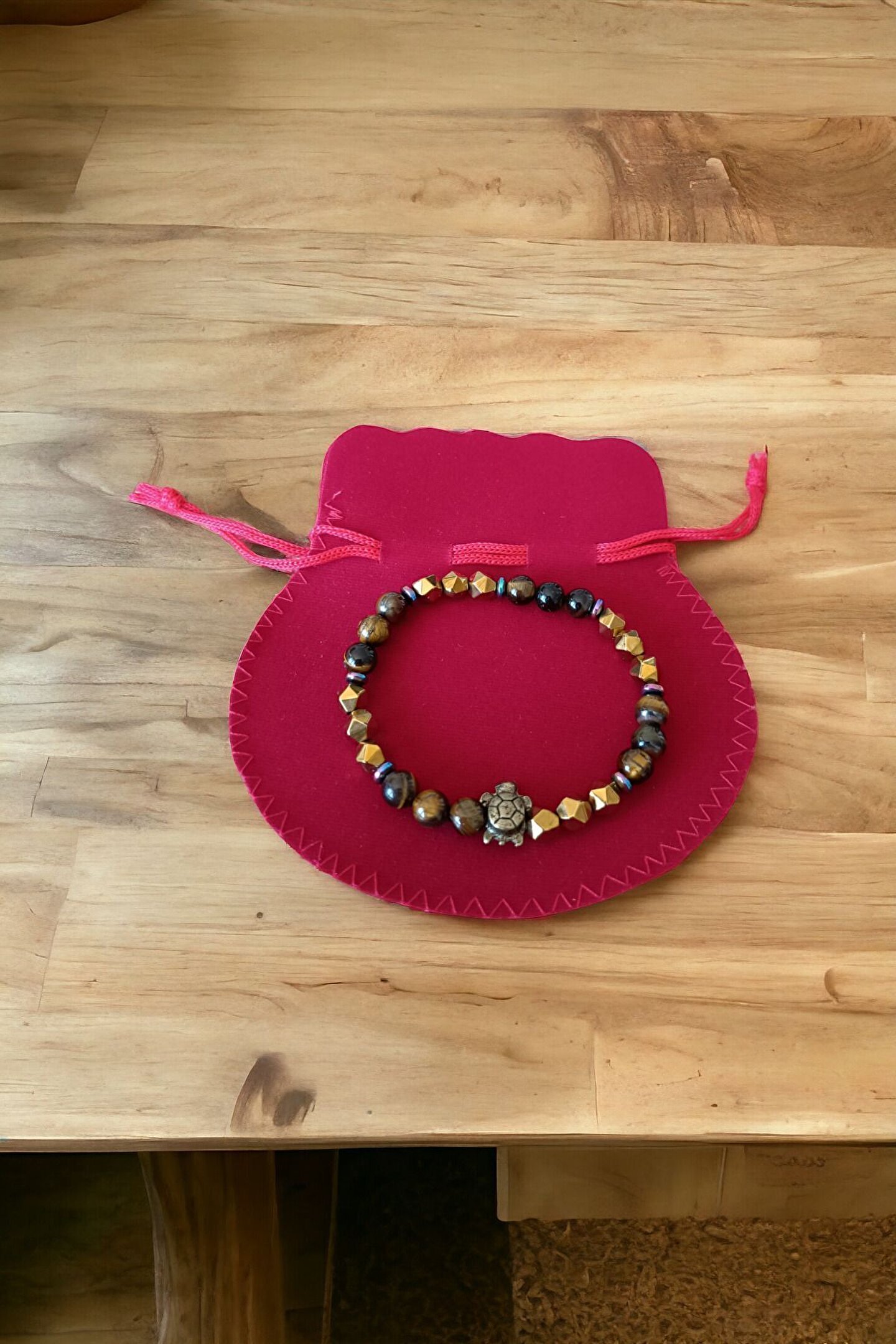 Tüm Taşlarımız Doğal Orijinal GerçekTaştır Piyasada Sentetik boncuk Taşlar ile lütfen Mukayese etmeyin ; Tüm ürünler orijinal Sertifika ilegönderilir Faturanız kesilir Sisteme işlenir ; Taşlar : Kaplan Gözü TaşıHematit Taşı ; Kesim: Normal kesim model + Disk kesim ; Taş boyutu : 8 mm - hematit disk 6 mm ; Taş sayısı : Bedenlere göre değişim olur ; Aparat: Metal Desenli ; Metal: Paslanmaz kaplama metallerdir ; Görüntü: Resim Ortalama 20-21 cm göreçekilmiştir ; Bilek yapınıza göre ayarlanacakmodelde taş + artı yada - eksi olabilir ; Bileklik ölçüsü: 16-17 cm - 18-19 cm -20-21 cm - 22-23 cm ; Sargı: 1 mm misina ipi Kalite: Doğaltaşlar ; Ürün içeriği: bileklik + sertifika +yedek misina ; Ambalajı: Seçenekler Mevcuttur ; Paket içeriği : 1 adet bileklik + 20-25cm uzunluğunda1 adet yedek misine ; İp: Esnek uzayıp kısalabilen misina herbileğe uyum sağlar bileği sıkmaz ; Ayrıca yedek misina gönderilmektedirbileklik bilek yapınıza göre yeniden tasarlayabilirsiniz ;