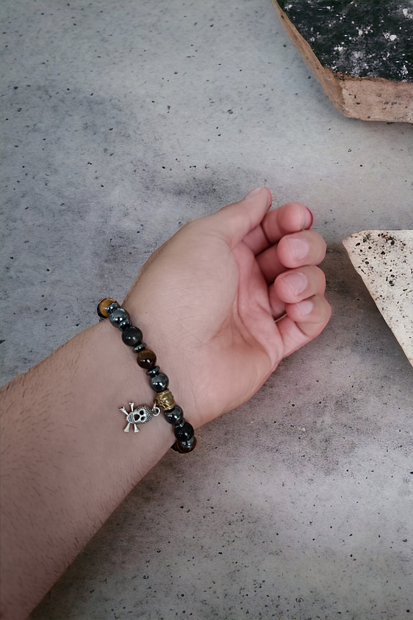 Tüm Taşlarımız Doğal Orijinal GerçekTaştır Piyasada Sentetik boncuk Taşlar ile lütfen Mukayese etmeyin ; Tüm ürünler orijinal Sertifika ilegönderilir Faturanız kesilir Sisteme işlenir ; Taşlar : Kaplan Gözü Taşı Hematit Taşı Oniks Taşı ; Kesim: Normal kesim model + Disk kesim ; Taş boyutu : 8 mm - hematit disk 6 mm ; Taş sayısı : Bedenlere göre değişim olur ; Aparat: Metal Desenli ; Metal: Paslanmaz kaplama metallerdir ; Görüntü: Resim Ortalama 20-21 cm göreçekilmiştir bilek yapınıza göre ; ayarlanacak modelde taş +artı yada - eksi olabilir Bileklik ölçüsü: 16-17 cm - 18-19 cm -20-21 cm - 22-23 cm ; Sargı: 1 mm misina ipi Kalite: Doğaltaşlar ; Ürün içeriği: bileklik + sertifika +yedek misina ; Ambalajı: Seçenekler Mevcuttur ; Paket içeriği : 1 adet bileklik + 20-25cm uzunluğunda1 adet yedek misine ; İp: Esnek uzayıp kısalabilen misina herbileğe uyum sağlar bileği sıkmaz ; Ayrıca yedek misina gönderilmektedirbileklik bilek yapınıza göre yeniden tasarlayabilirsiniz ;