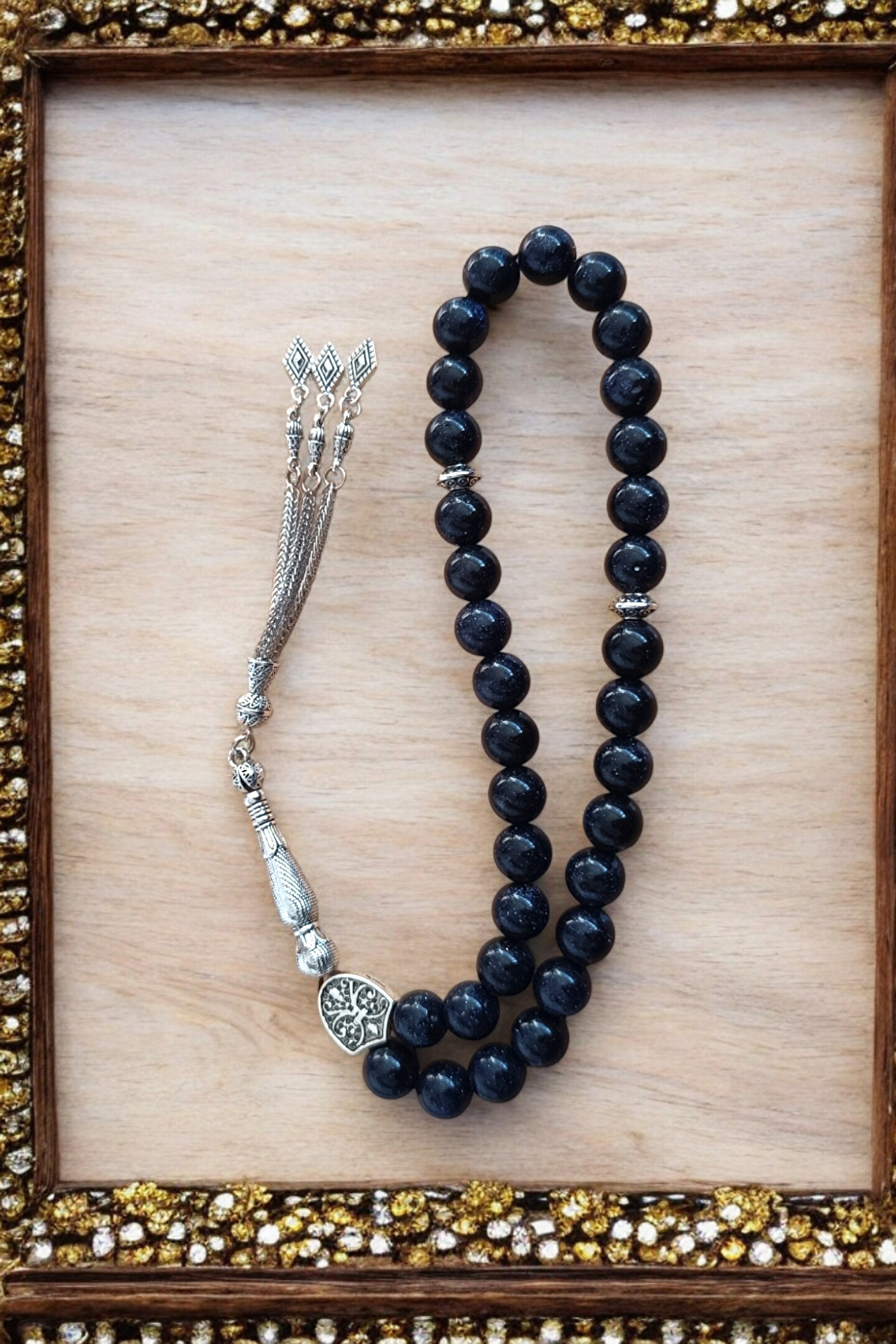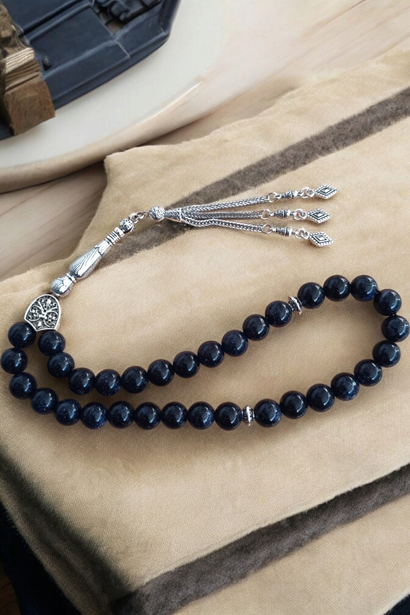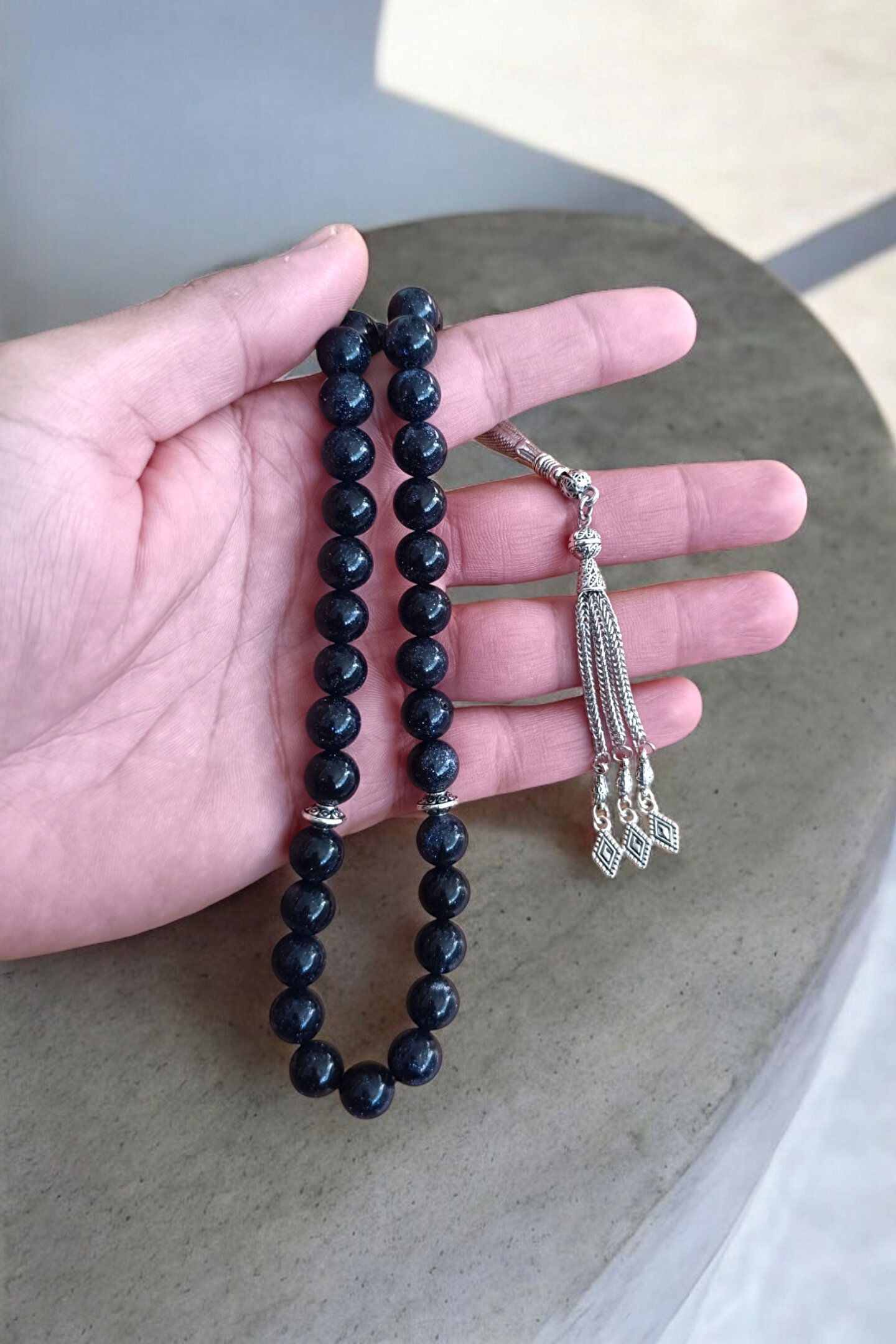 - Orijinal doğal taş kullanılarak üretilmiş, Lacivert Yıldız Jasper Taşı tesbih, şıklığı ve doğallığı bir arada sunar.; 10 mm Büyük Boy Tesbih - 33'lük tesbih seti, her bir bileklikte 33 adet Lacivert Yıldız Jasper Taşı ile tasarlanmıştır ve bu sayede hem estetik hem de manevi bir anlam taşır.; - Gerçek hakiki doğal taş kullanılarak üretilen bu tesbih, uzun ömürlü ve dayanıklı yapısıyla dikkat çeker.; - Sertifikalı doğal taş kalitesiyle öne çıkan bu ürün, Mga Doğaltaş Tasarım imzasını taşır ve kalite standartlarına uygun olarak üretilmiştir.; - Doğal taş görünümüyle dikkat çeken deseni sayesinde, her tür kıyafetle kolayca uyum sağlar ve zarif bir aksesuar olarak kullanılabilir.; - Tesbih Uzunluk : 30 cm imame uzunluk 3,5 cm Taş Boyutu: 1.00 cm 3 Püsküllü, Özel Sağlam Tesbih ipi ile dizilmiştir.; - Tüm Resimler Ve Tasarımlar MGA Doğal Taş'a aittir