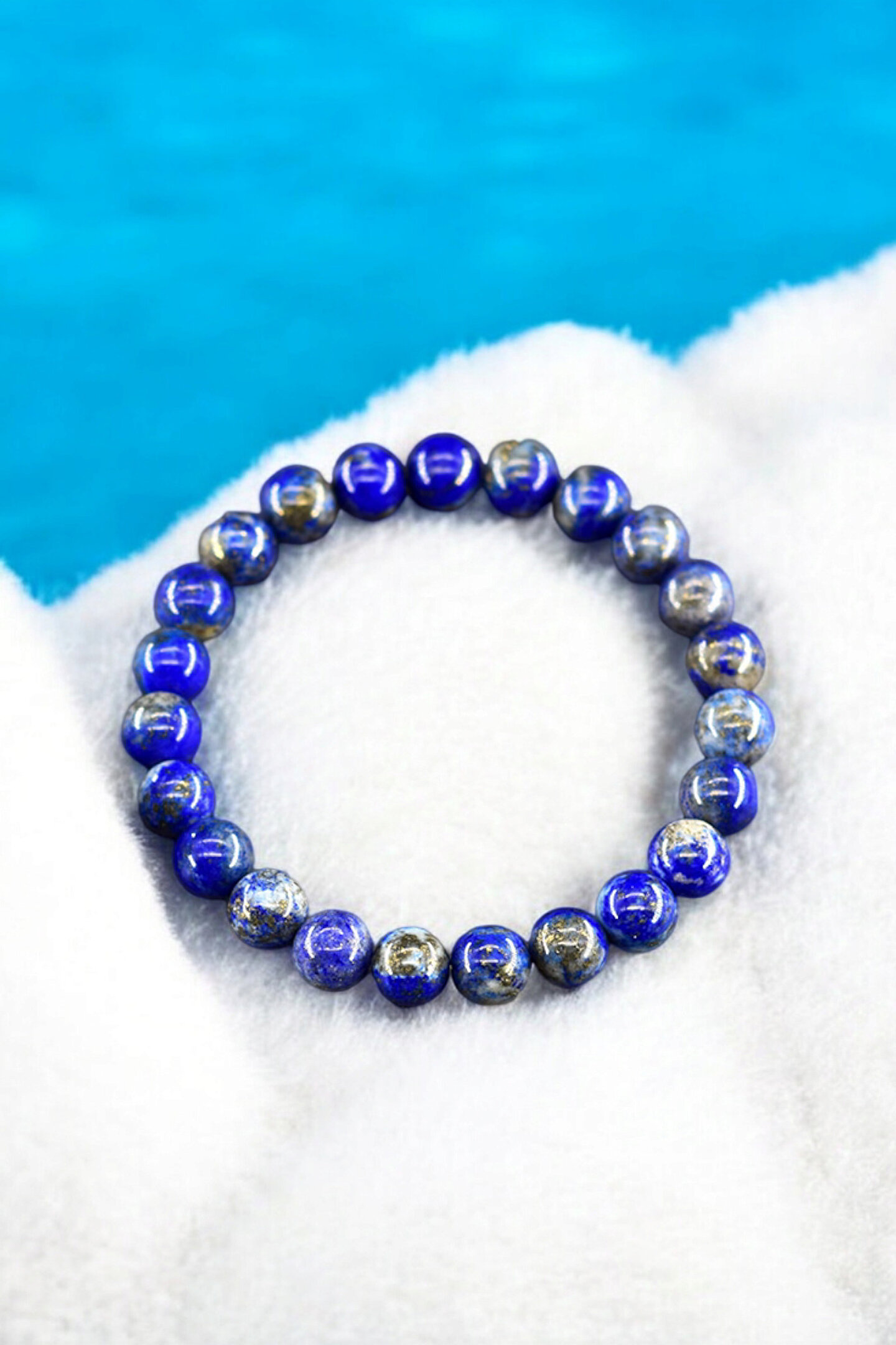 Doğal taş materyali ile üretilmiş, her bileğe uygun esnek yapısı sayesinde rahat bir kullanım sunar; Lapis lazulli taşı, bileklikte kullanılan ana malzeme olarak öne çıkar ve benzersiz bir parlaklık ve şıklık katar; Esnek misina yapısı, bileklerinize mükemmel uyum sağlayarak gün boyu konforlu bir deneyim sunar; Her bilek boyutuna uygun tasarımı ile geniş bir kullanıcı kitlesine hitap eder ve herkesin zevkine uygun bir aksesuar seçeneği oluşturur;