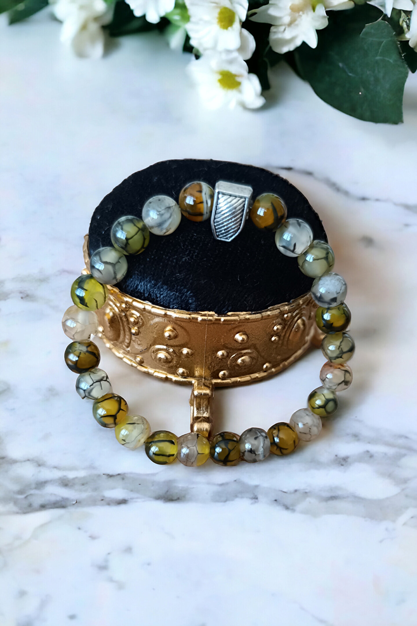 Tüm Taşlarımız Doğal Orijinal GerçekTaştır Piyasada Sentetik boncuk Taşlar ile lütfen Mukayese etmeyin ; Tüm ürünler orijinal Sertifika ilegönderilir Faturanız kesilir Sisteme işlenir ; Taşlar :Akik Taşı ; Kesim: Normal kesim model ; Taş boyutu : 8 mm ; Taş sayısı : Bedenlere göre değişim olur ; Aparat: Metal Desenli ; Metal: Paslanmaz kaplama metallerdir ; Görüntü: Resim Ortalama 20-21 cm göreçekilmiştir ; Bilek yapınıza göre ayarlanacakmodelde taş + artı yada - eksi olabilir ; Bileklik ölçüsü: 16-17 cm - 18-19 cm -20-21 cm - 22-23 cm ; Sargı: 1 mm misina ipi Kalite: Doğaltaşlar ; Ürün içeriği: bileklik + sertifika +yedek misina ; Ambalajı: Seçenekler Mevcuttur ; Paket içeriği : 1 adet bileklik + 20-25cm uzunluğunda1 adet yedek misine ; İp: Esnek uzayıp kısalabilen misina herbileğe uyum sağlar bileği sıkmaz ; Ayrıca yedek misina gönderilmektedirbileklik bilek yapınıza göre yeniden tasarlayabilirsiniz ;