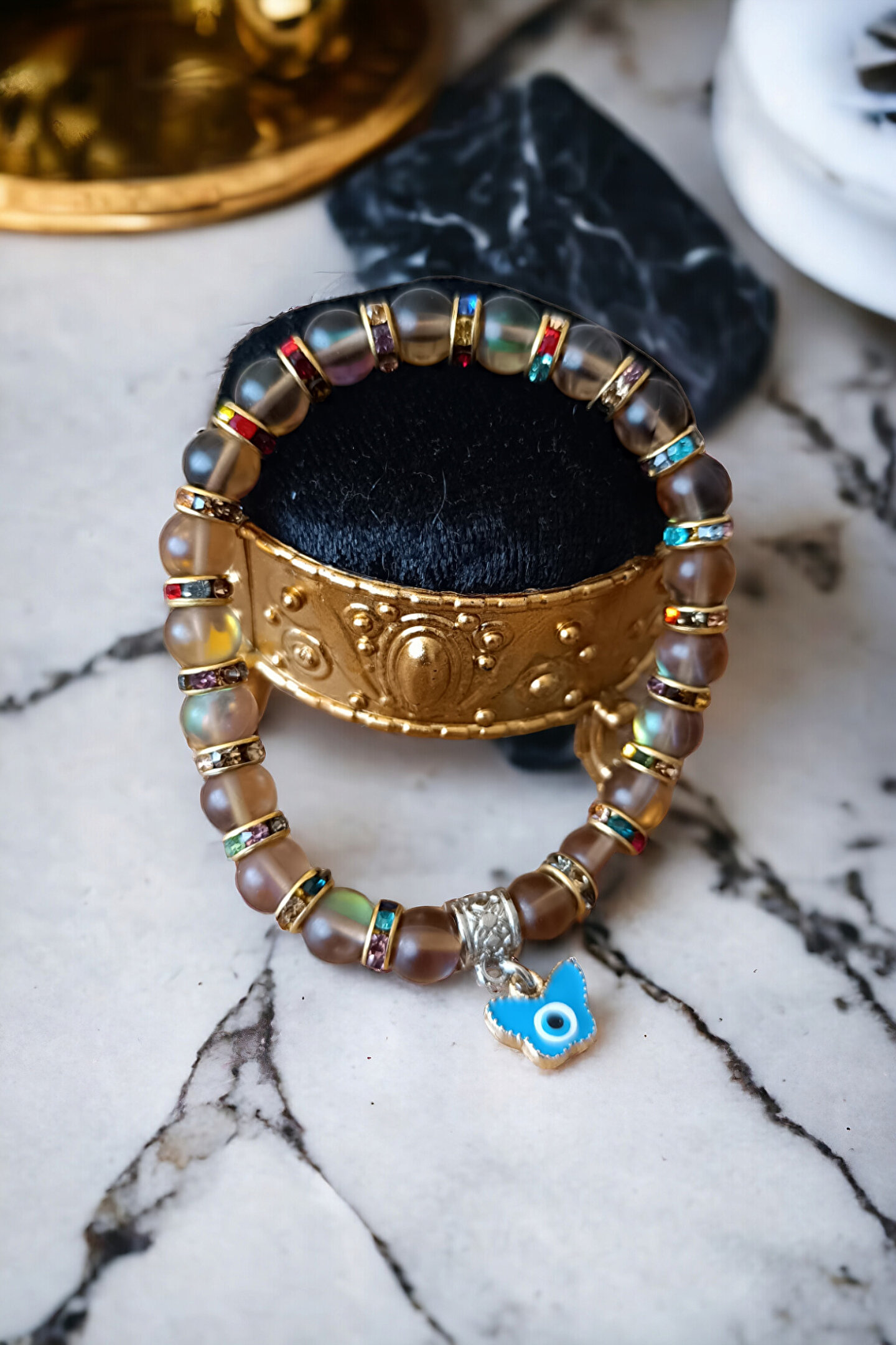 MGA DOĞAL TAŞ Termal Kuvars Desenli Doğal Taş Bileklik Renkli Rondela Bileklik Orijinal Taş