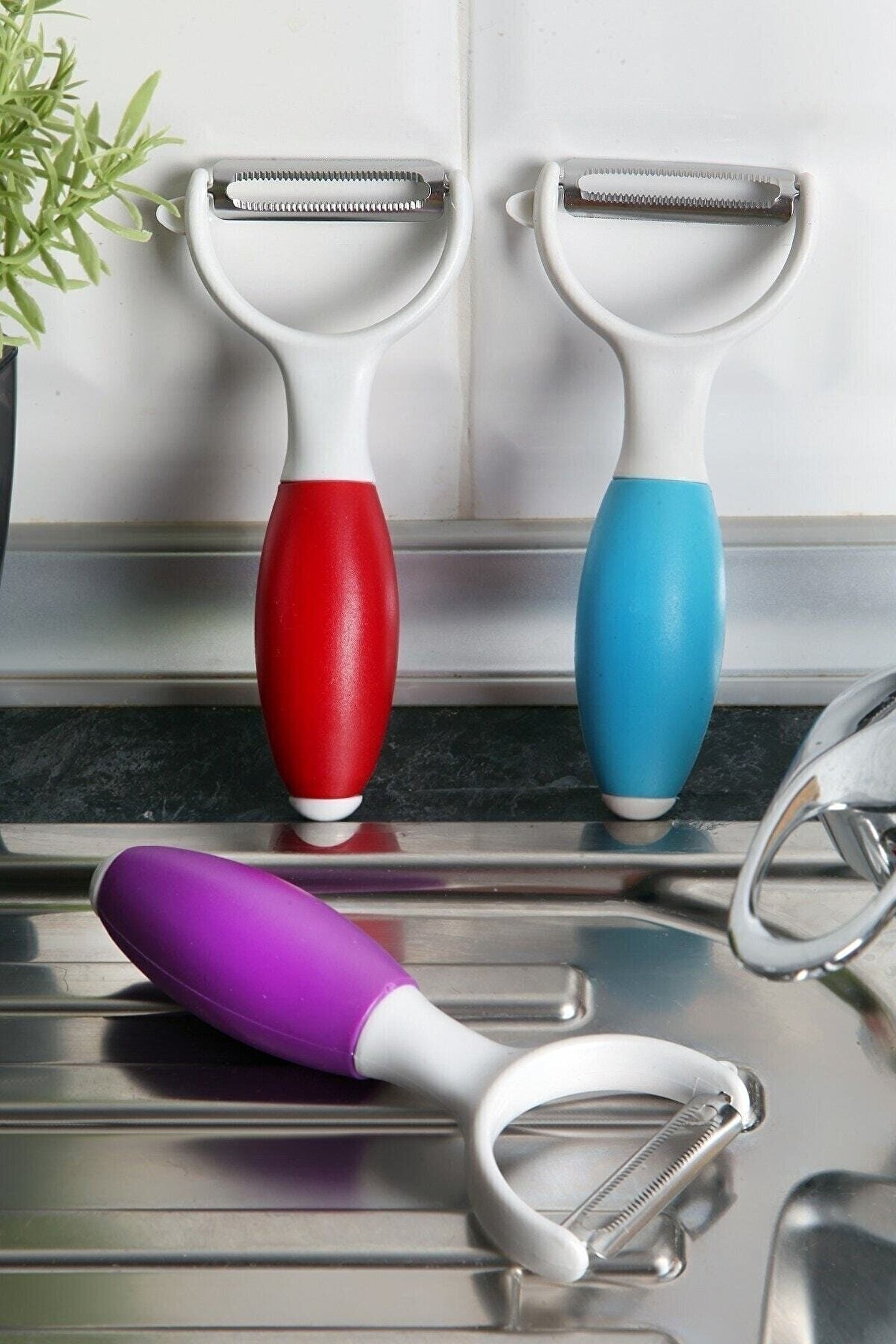 minibirevim Pratik Renkli Silikon Saplı Tombul Soyacak Çelik Meyve Sebze Soyacağı 1 Adet