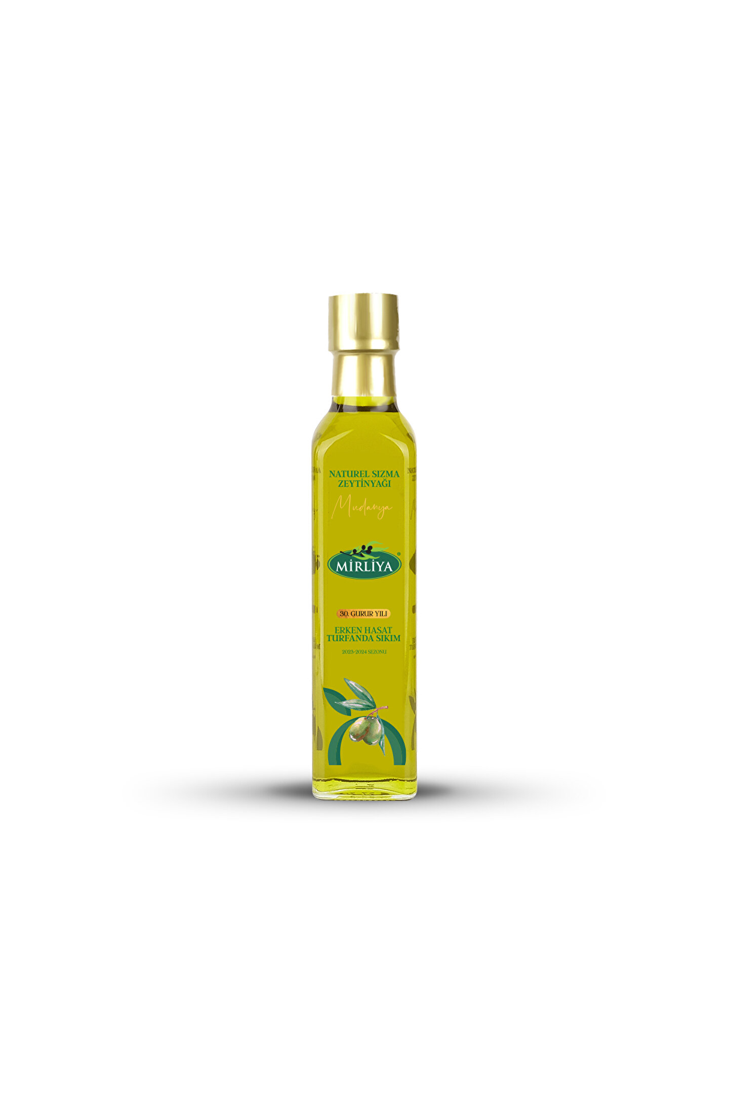 Mudanya'nın M.; Ö.; 700'lerde kurulduğu yazılı tarih kitaplarında.; MYRLEA, APAMEIA, MONTANIA da tarihi isimleri.; Marmara bölgesinin renk, rayiha ve tat olarak en kaliteli zeytinyağı MUDANYA'daki zeytin ağaçlarının meyvesi olan zeytinden elde edilir.; Biz markamızı onun içindir ki MİRLİYA olarak seçtik ve tescil ettirdik.; "TURFANDA" mevsimin ilk çıkan zeytininden geleneksel yöntemlerle sıkılan yağımızı sizlerle buluşturmaktan dolayı mutlu ve gururluyuz.; Hasat döneminin ilk yeşil zeytinlerinden,elle toplanarak aynı gün içerisinde fabrikamızda sıkımı yapılan TURFANDA SIKIM ERKEN HASAT NATUREL SIZMA ZEYTİNYAĞI;paslanmaz krom tanklarda dinlendirildikten sonra,filtre edilerek şişelenip satışa sunulmaktadır.; Yoğun aroması ve yoğun meyvemsi tadı ile özellikle kahvaltı,soğuk meze ve soğuk yemeklerinizde tercih edebileceğiniz bir üründür.; Yeşil zeytinden üretildiği için normal sızma zeytinyağı rengine göre daha yeşil renktedir.; Oleik asit oranı %0,3'tür.; Direkt güneş ışığından koruyarak muhafaza ediniz.; İçildiği zaman boğazda kuvvetli bir şekilde yakarlılık hissi verir.; HASAT DÖNEMİ:202452026 S.; K.; T:12/2027