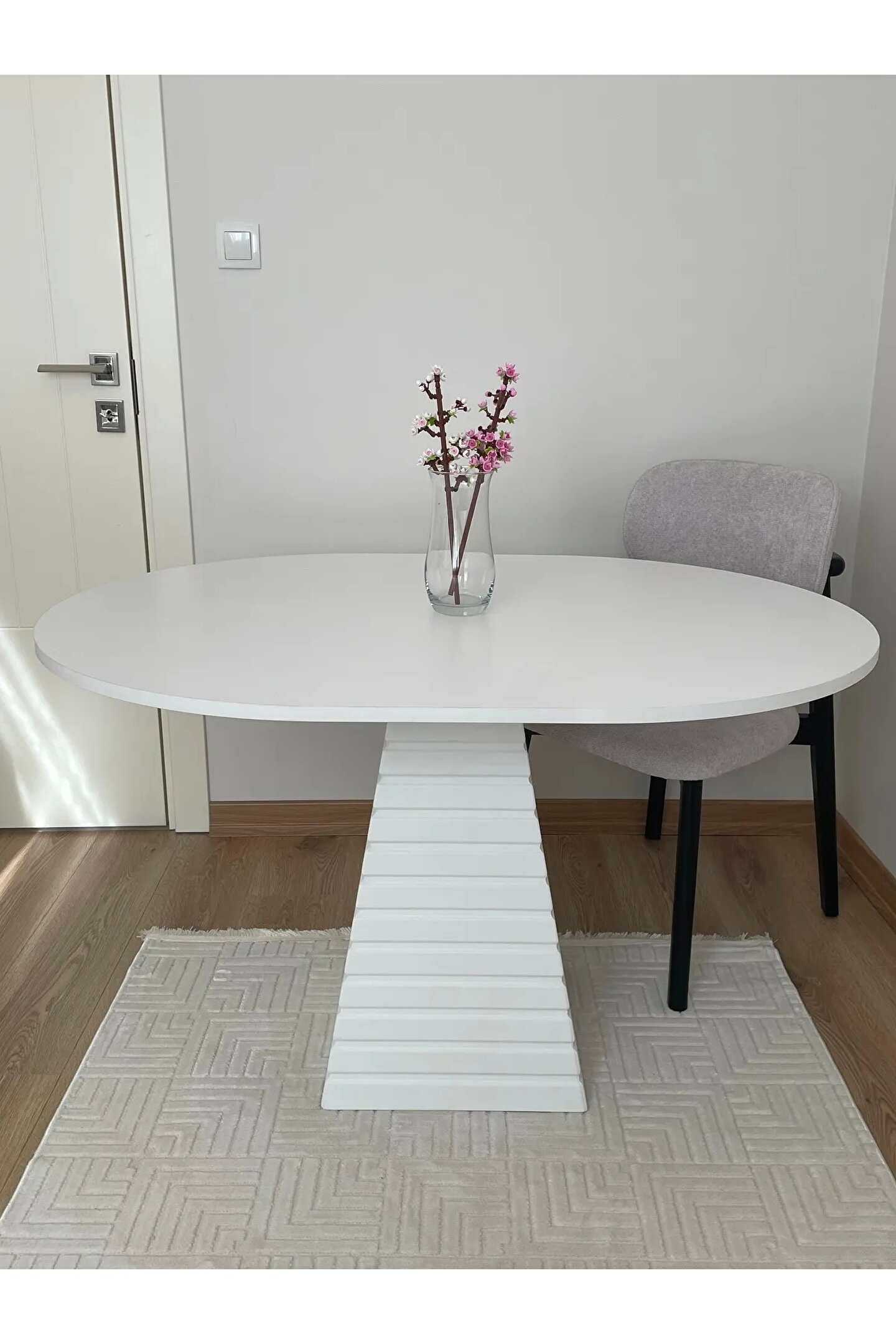 120x90 Cm Oval Beyaz Eksen Ahşap Yemek Masası - Fungi Serisi - Mutfak, Balkon, Kafe Masası