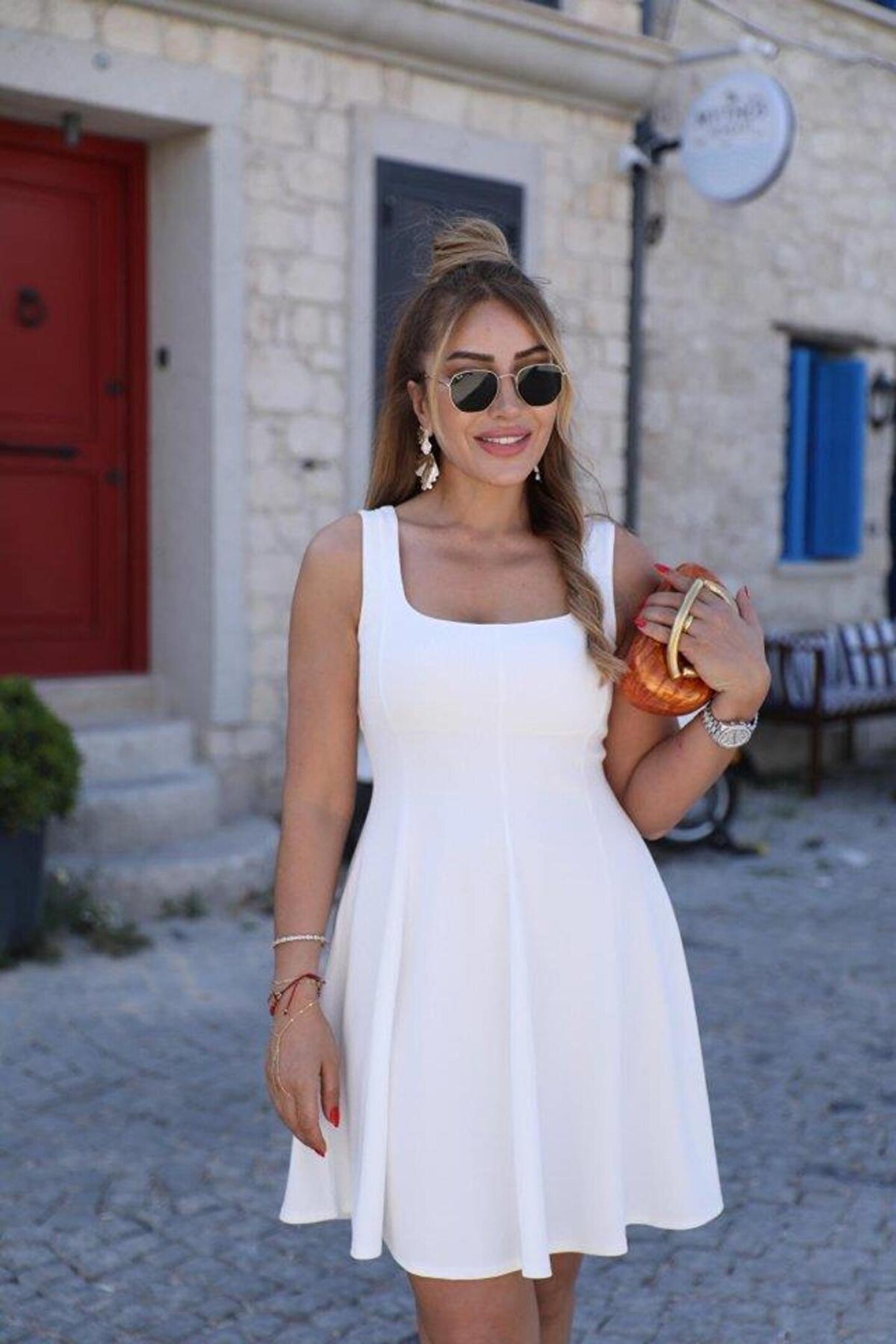 Kadın Kare Yaka Mini Elbise