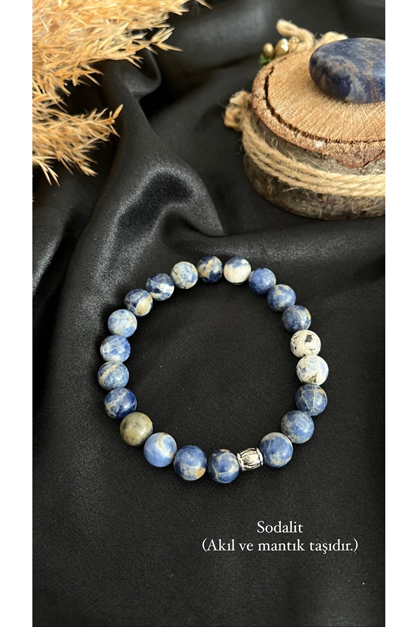 Bileklik 8 mm Sodalit doğal taştan üretilmiştir. ; Taşlarımız gerçek doğal taştır. ; Doğal taşlar tabiatı itibariyle kendine özgü biçimdedir ve aynı taş cinslerinde dahi ufak tefek renk tonu ve biçim farklılıkları görülebilir. ; Bu taşın doğadaki doğal oluşumuyla ilgilidir. ; Belli aralıklarla topraklama yöntemiyle taşınızın enerjisini temizleyip taşlarınızı arındırabilirsiniz. ; Sodalit taşı akıl ve mantık taşıdır. ; Zihin yorgunluğuna ve kafa karışıklığına iyi gelir. ; Gerçekçi düşünmeyi ve mantıklı olmayı sağlar. ; Meditasyon için idealdir ve kesinlikle kullanılmalıdır. ; Odaklanmayı ve rahatlamayı kolaylaştırır.;