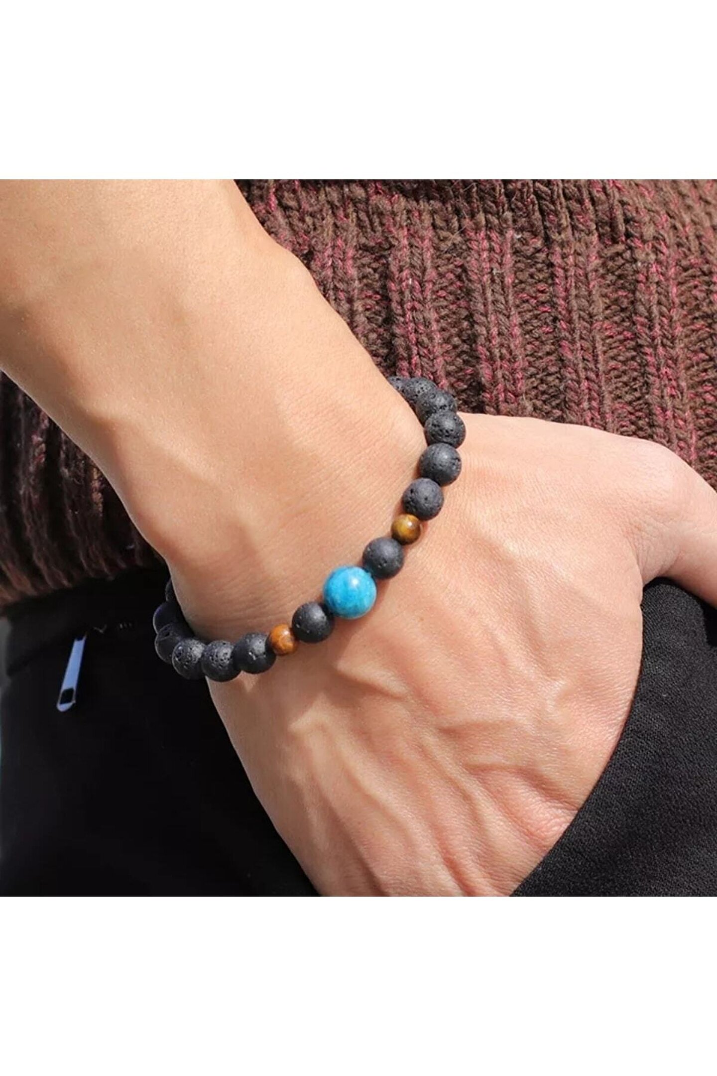 Doğal taş kullanımı sayesinde benzersiz ve şık bir görünüm sunar.; Gençlerin tarzını tamamlayacak modern tasarıma sahiptir.; Doğal taştan üretilmiş olması, doğallığı ve zarifliği ön plana çıkarır.; Bileklik, bileğe rahatça oturacak şekilde tasarlanmıştır, konforlu bir kullanım sunar.;