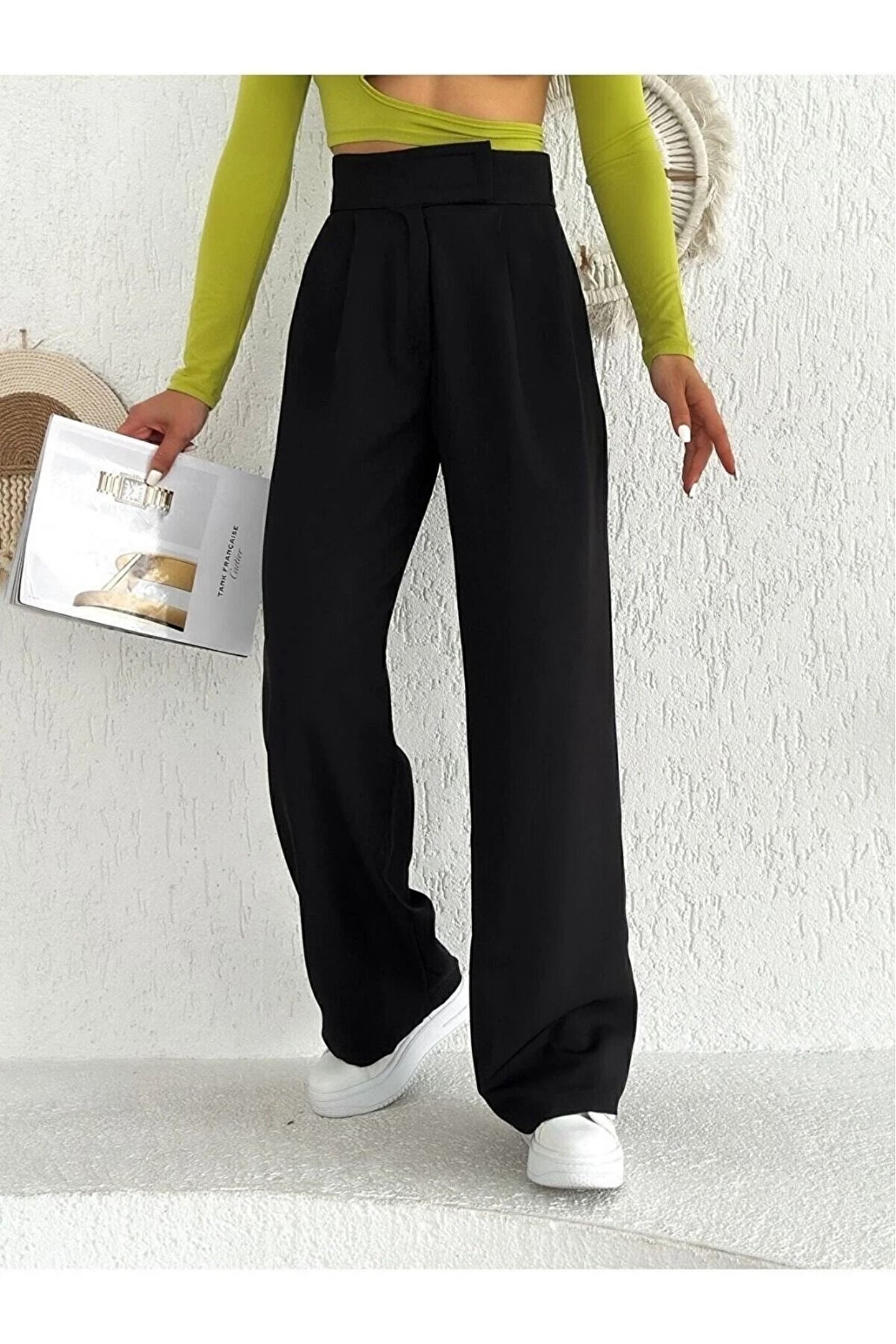 GİYİM Cırt Cırtlı Bol Paça Plazzo PantolonKadın Yüksek Bel Beli Cırt Kapamalı Palazzo Pantolon