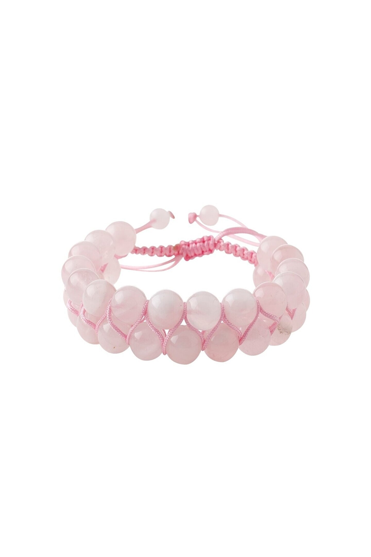MMZ STORE Pembe Kuvars (Gül Kuvars) 8mm Çift Sıra Makrome Doğal Taş Bileklik