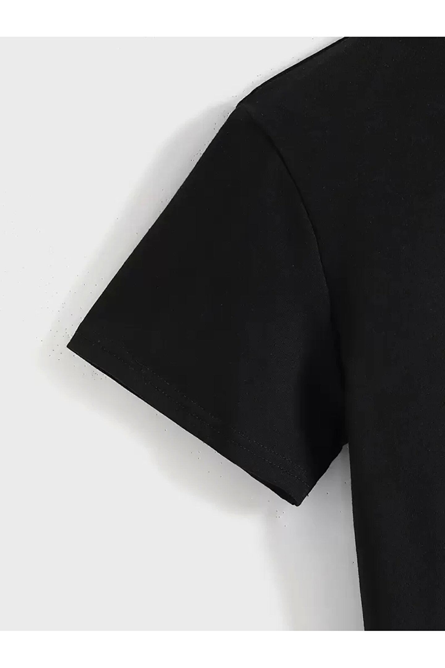 MODA 201 Penye Compack Baskılı Oversize Kısa Kol Bisiklet Yaka T-shirt - Siyah