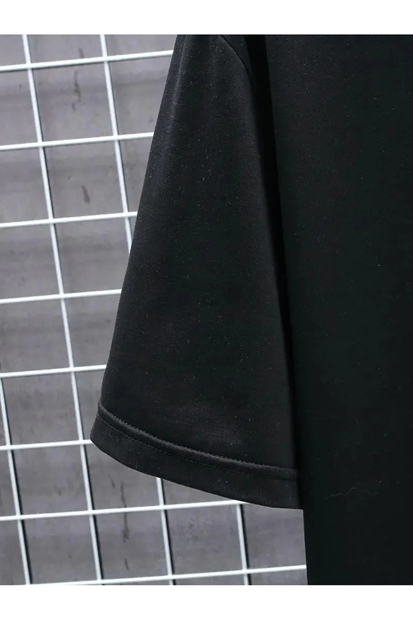 MODA 201 Penye Compack FUTRE Baskılı Oversize Kısa Kol Bisiklet Yaka T-shirt - Siyah