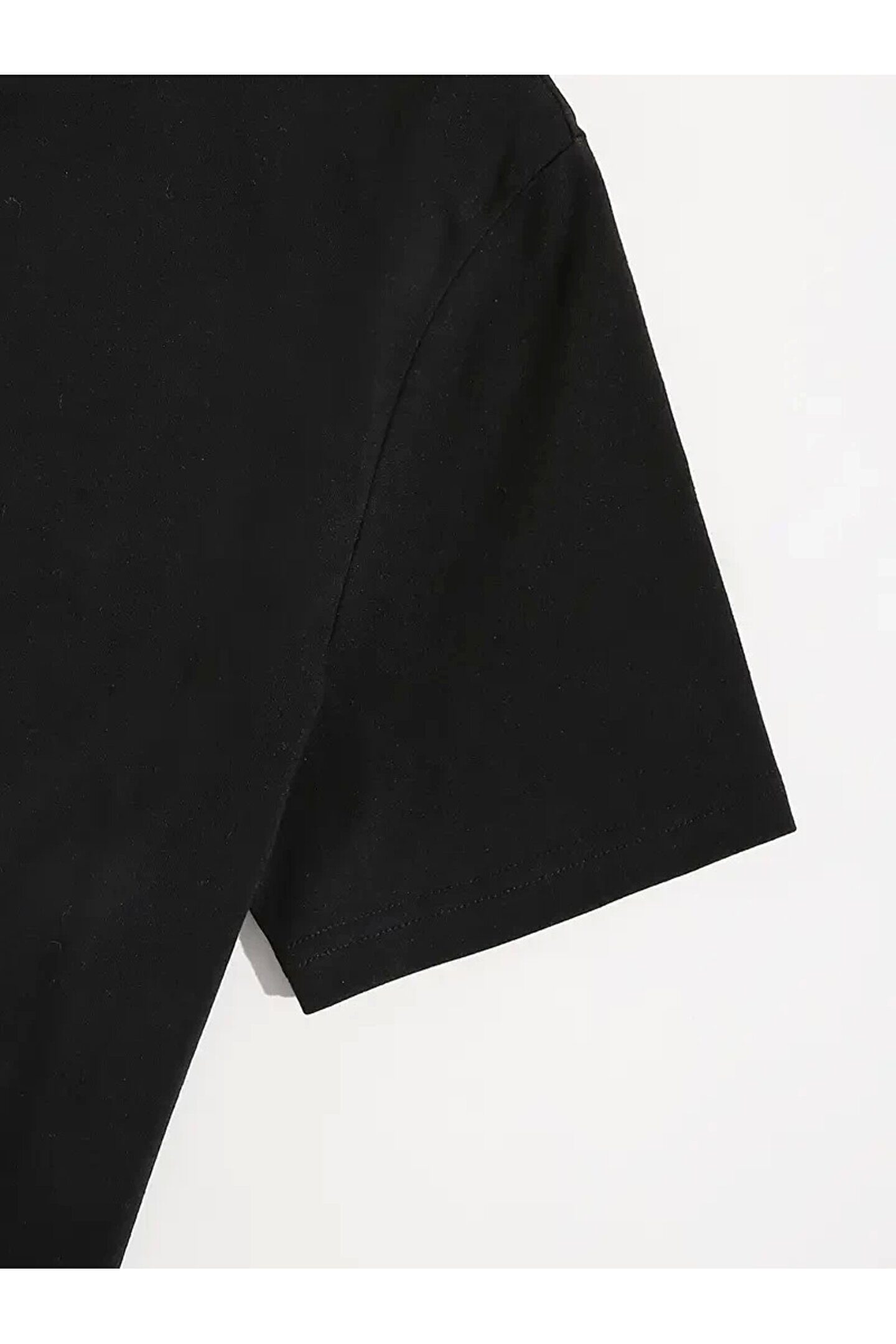 MODA 201 Penye Compack Shut up Baskılı Oversize Bisiklet Yaka Kısa Kol T-shirt - Siyah