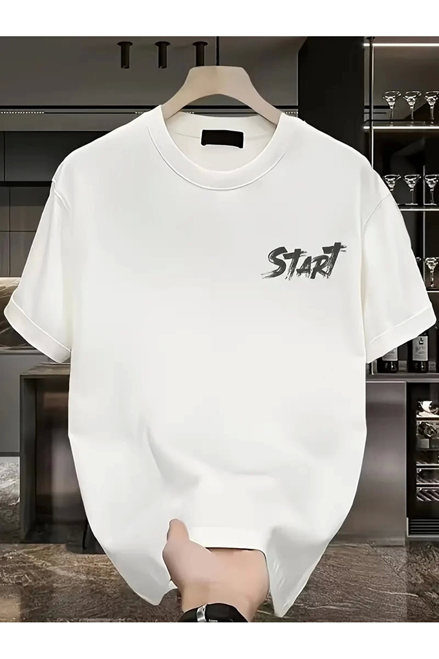 MODA 201 Penye Compack Start All Over Baskılı Oversize Bisiklet Yaka Kısa Kol Yazlık T-shirt - Beyaz