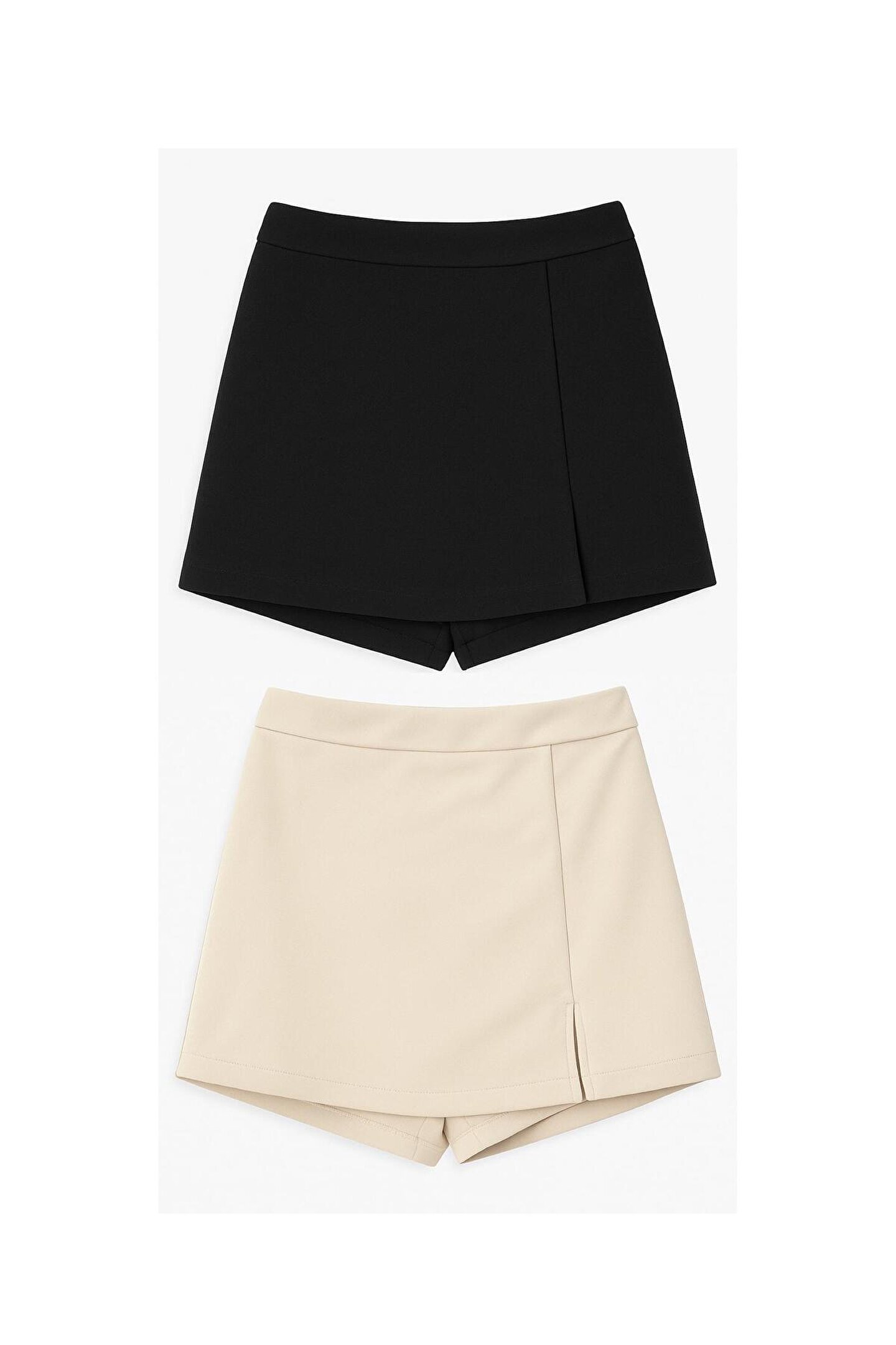 moda armanc 2li Yırtmaçlı Mini Şort Etek