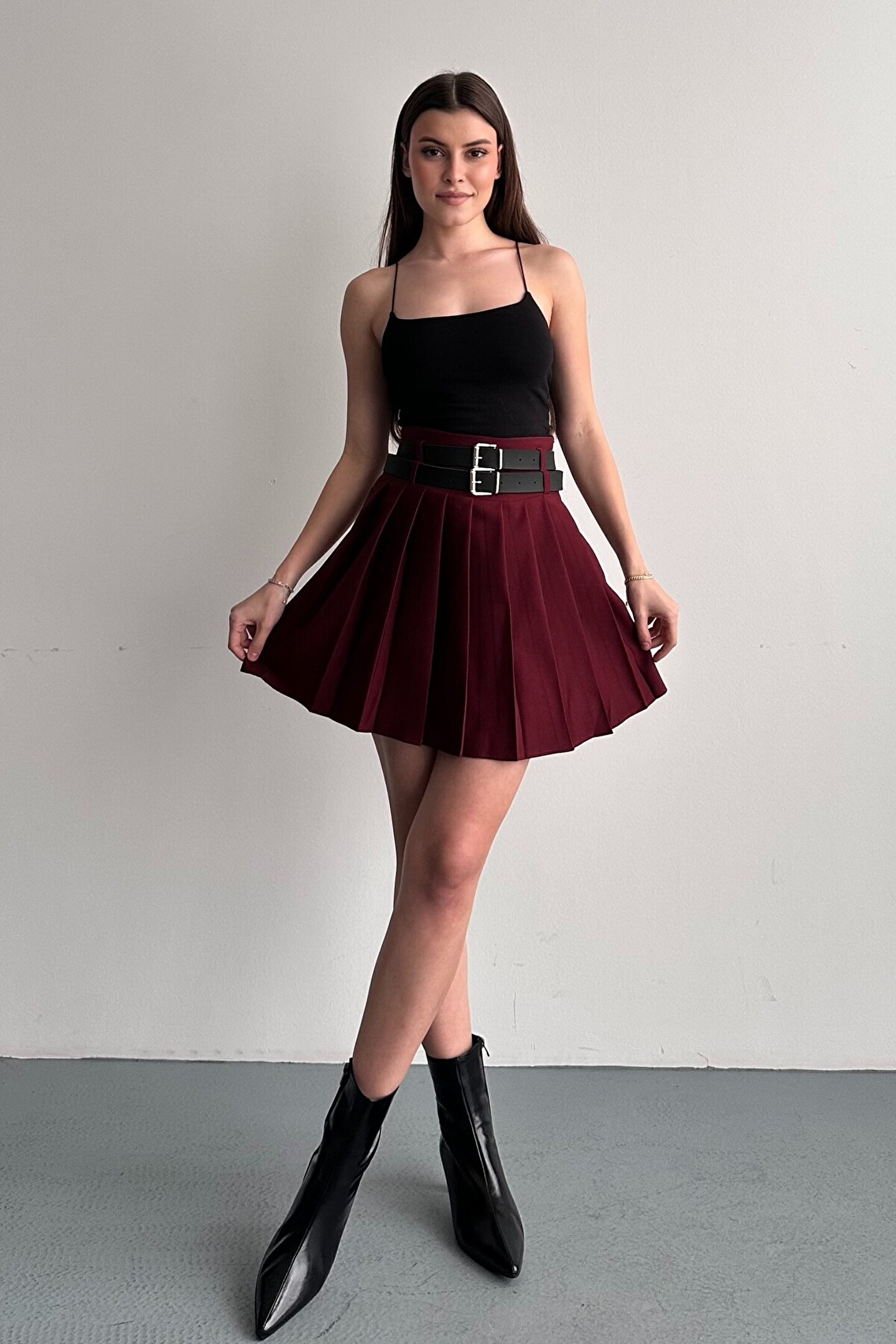 moda armanc Kadın Çift Kemerli Şortlu Pileli Mini Etek - Yüksek Bel İç Göstermez Günlük Şık Kombin Eteği