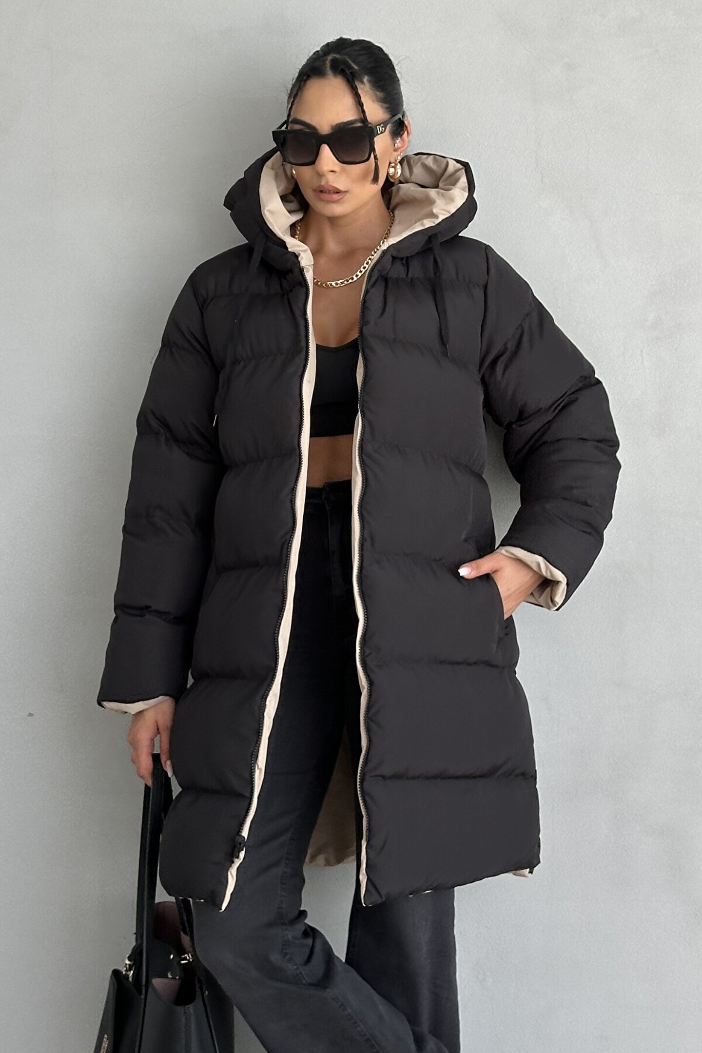 • Bir yüzü bej, diğer yüzü siyah olan mont sayesinde tek ürünle iki farklı stil yaratabilirsiniz.