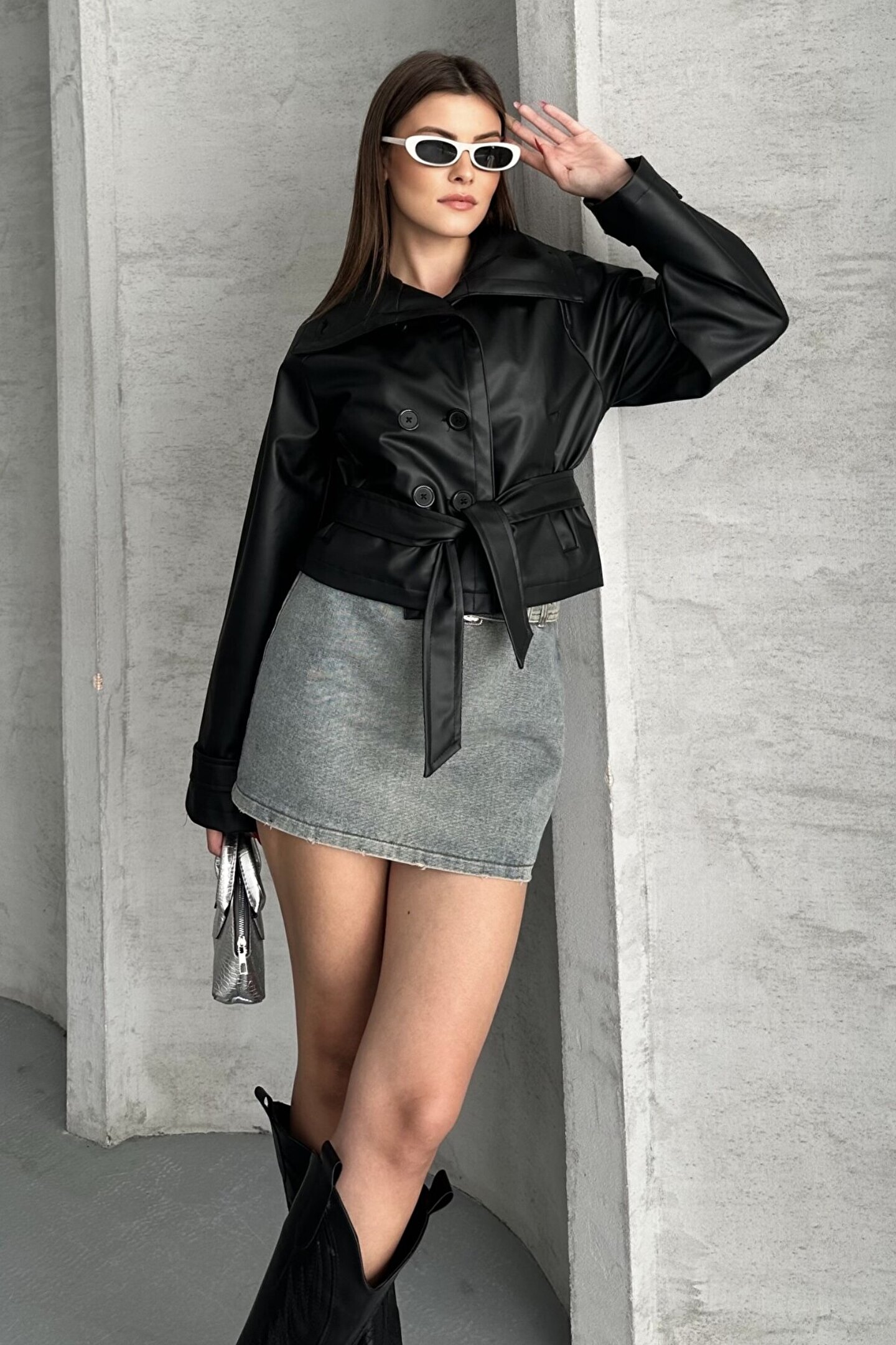 • Yeni sezonun trendi kısa deri trençkot ile tarzınızı yeniden tanımlayın!