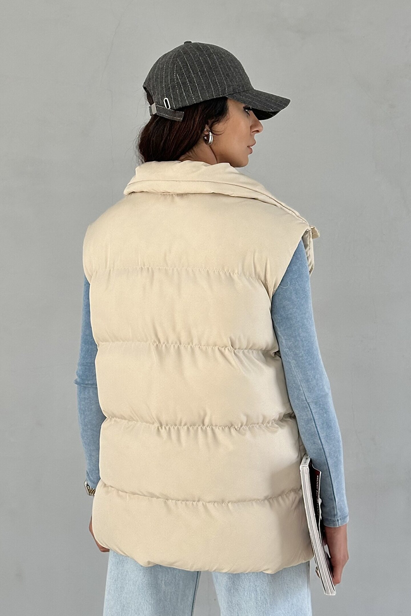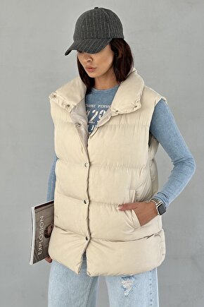 moda armanc Kadın Filotalı Cep Çıtçıtlı Yakalı Uzun Şişme Yelek