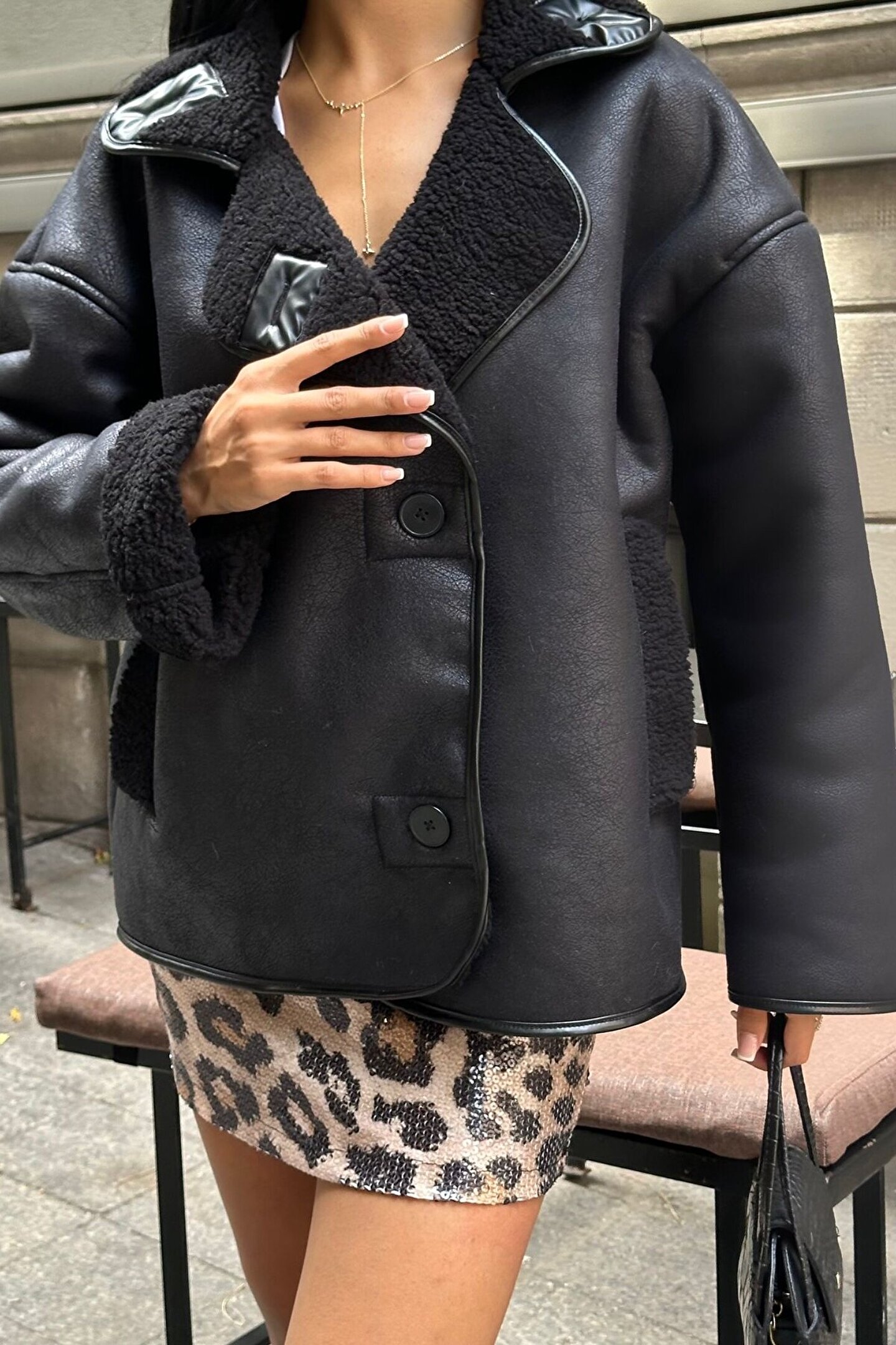 • Şıklığı ve konforu bir araya getiren bu kadın oversize süet deri mont, iç kısmındaki yumuşak kürk astarı ile sizi sıcacık tutar.