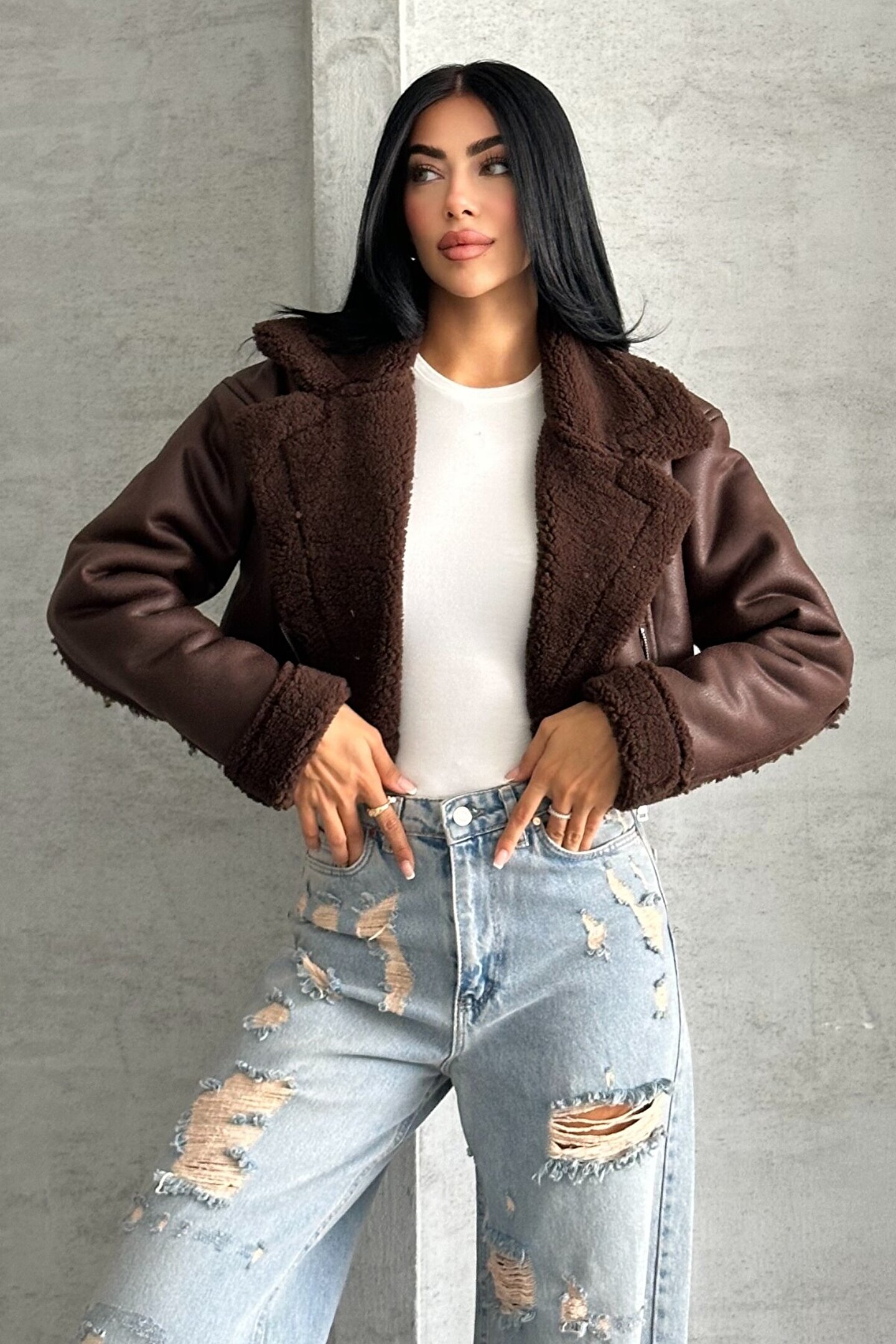 • Bu şık biker ceketi basic bir crop tişört ve uzun çizme ile kombinleyerek etkileyici bir görünüm yakalayabilirsiniz.