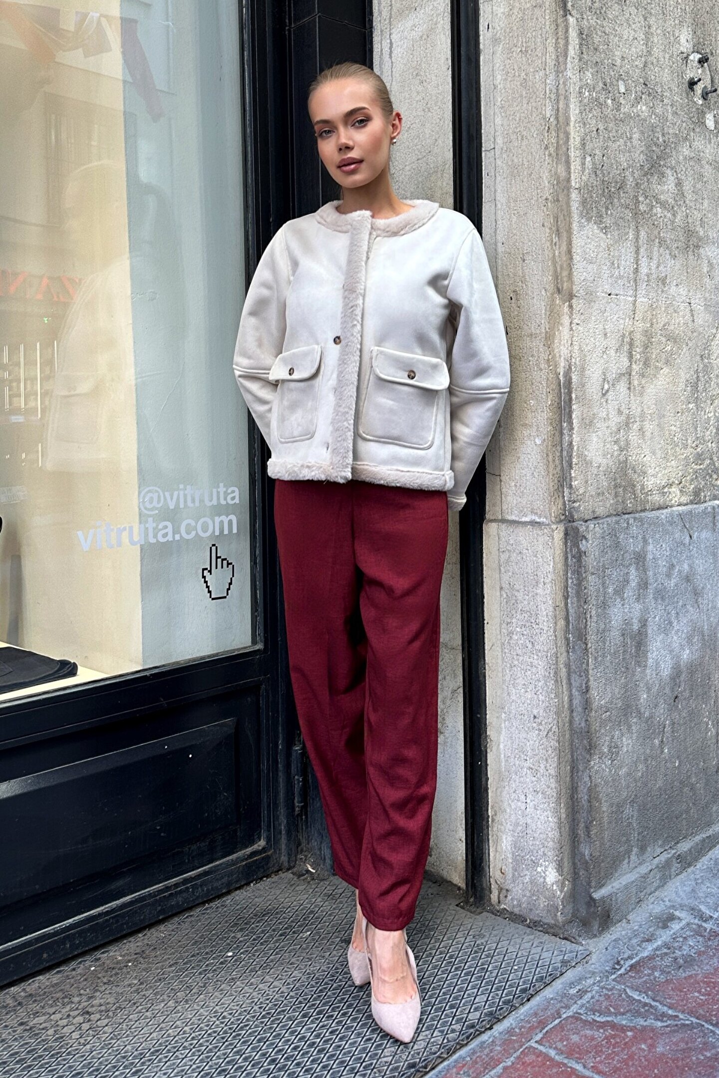 moda armanc Kadın İçi Suni Kürklü Süet Ceket - Yumuşak Dokulu, Düğmeli