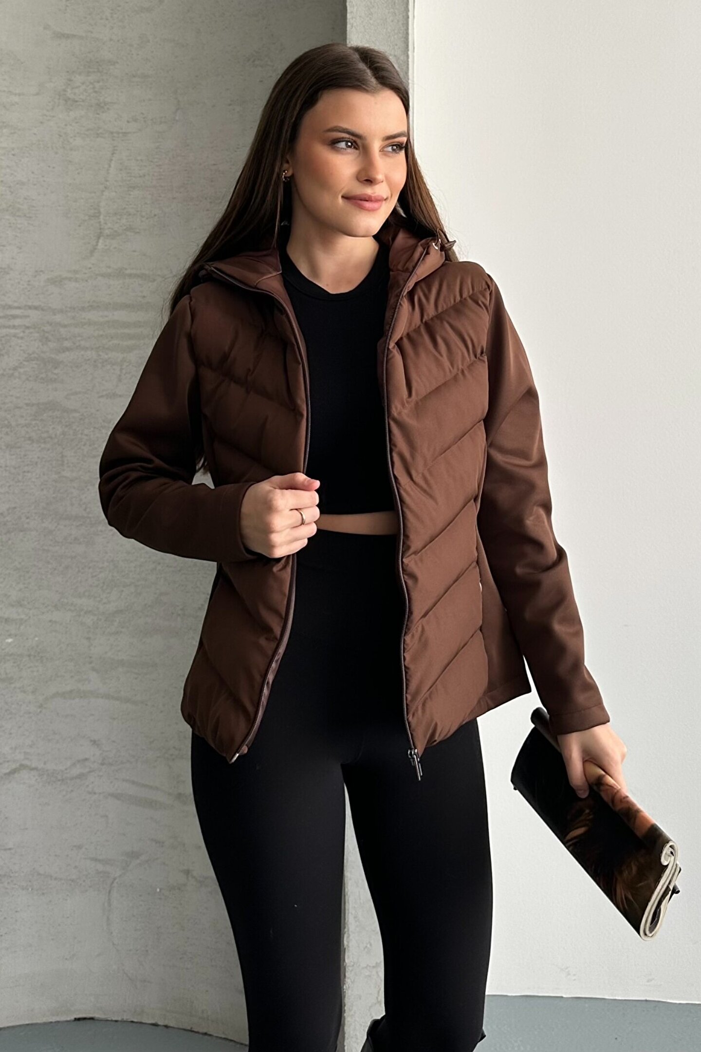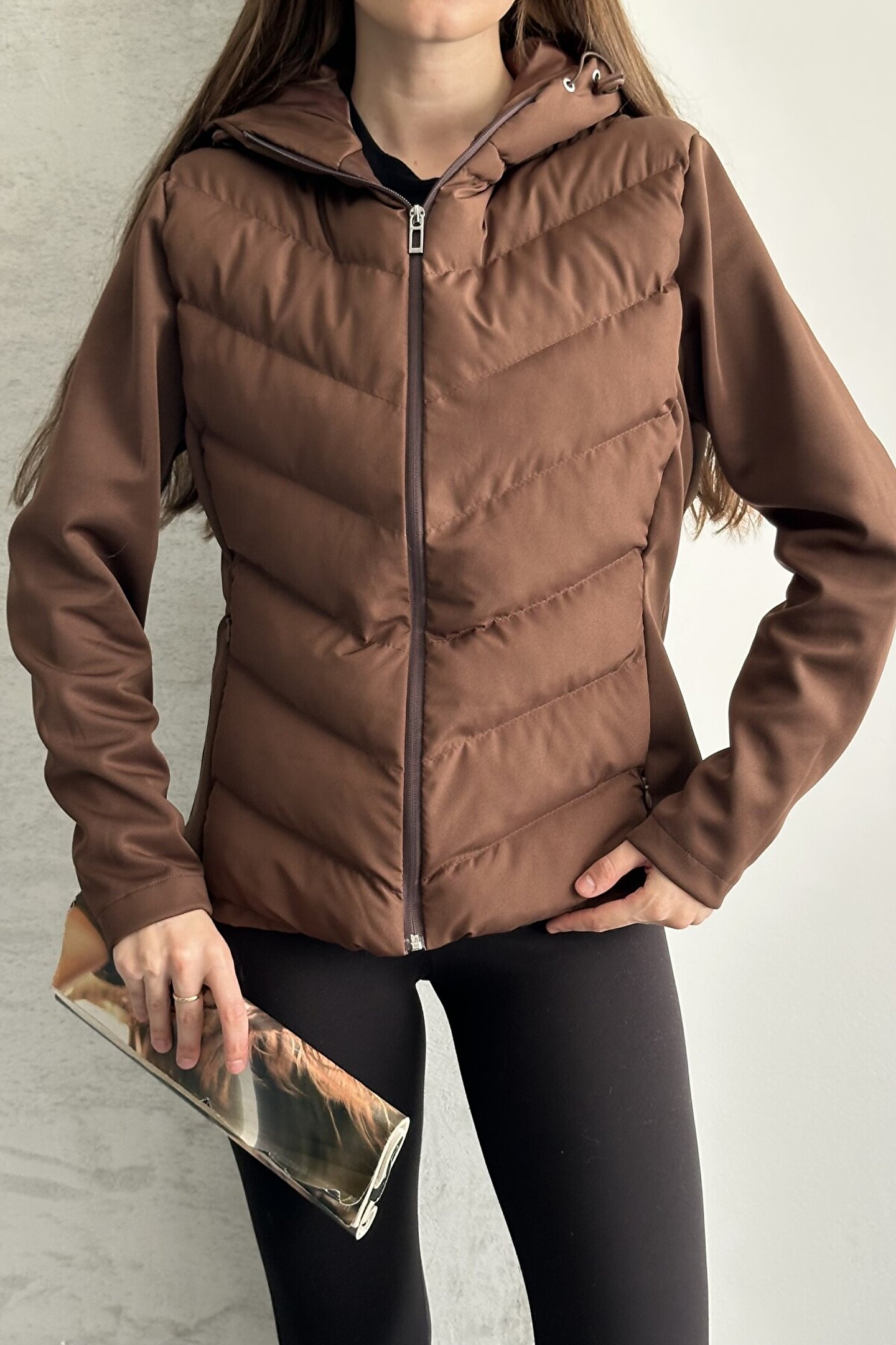 • Kahverengi kadın şişme mont