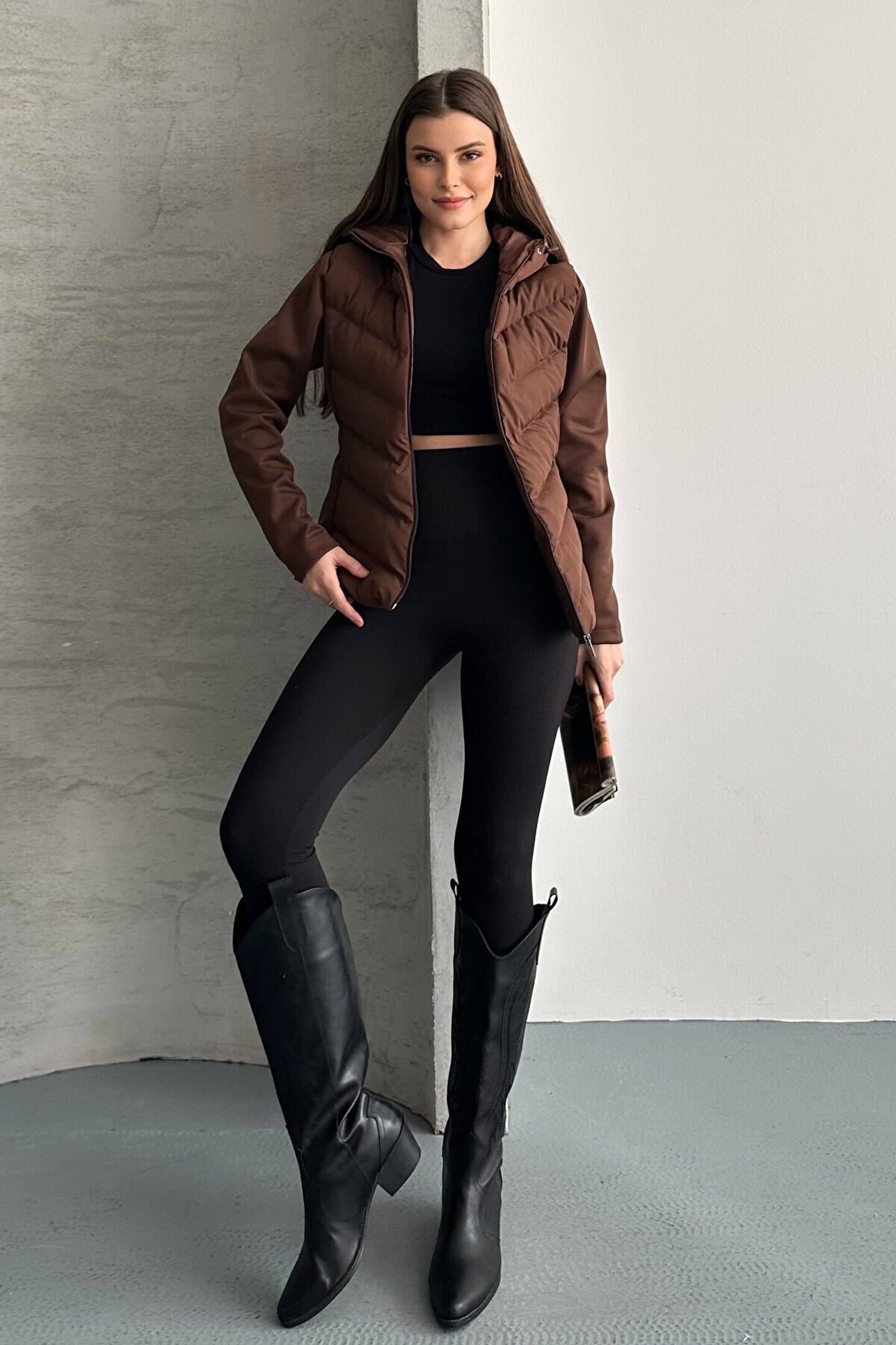 Kahverenginin asil tonu, şehir stiline sofistike bir hava katarken, kapüşonlu ve fermuarlı yapısı fonksiyonel kullanım sunar.