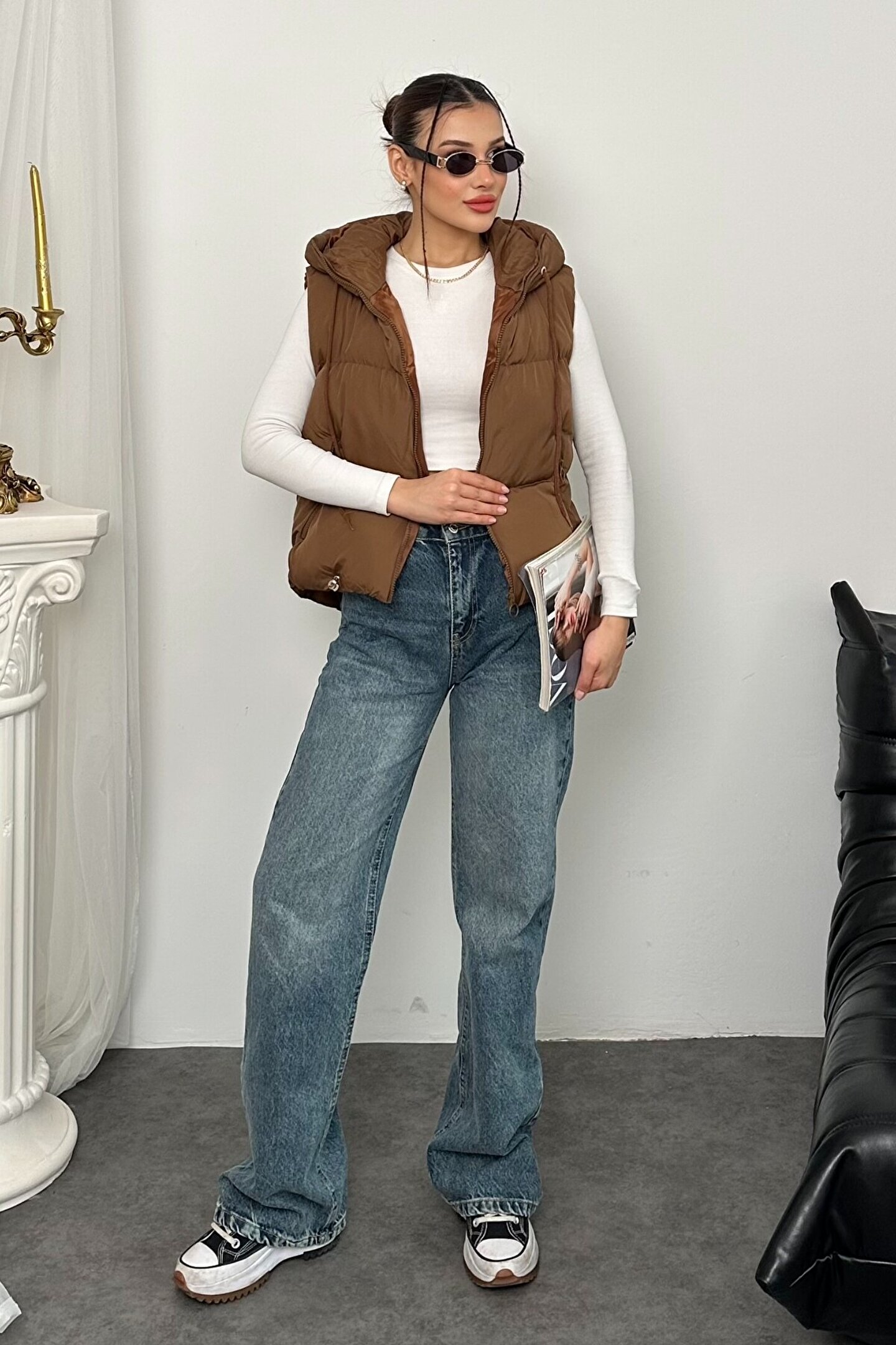 Trend kısa model ; Kapüşonlu tasarım ; Crop rahat kalıp ; Sıcak tutan dolgulu yapı ; Hafif & konforlu ; Fermuarlı cepler ; Ayarlanabilir alt bağcık ; Spor ve günlük kombinlere uyumlu ; Bu kadın kısa şişme yelek, kış ve geçiş mevsiminde sıcak tutarken stilinizi öne çıkaran modern bir tasarıma sahiptir.; ; Dolgulu yapısıyla ısı yalıtımı sağlar, kapüşonlu tasarımı rüzgâra karşı koruma sunar.; ; Crop kalıp sayesinde hareket rahatlığı verir ve hem tayt hem jean hem de spor giyimle kusursuz uyum sağlar.; ; Ayarlanabilir bağcık detayı ile vücut şekline göre form verebilirsiniz.; ; Günlük şehir stiline de spor giyime de mükemmel şekilde uyum sağlayan modern bir trend parçasıdır.; ; Hem sıcak – hem hafif – hem şık.; ; Sadece bir yelek değil, tam bir spor stil tamamlayıcı! ;