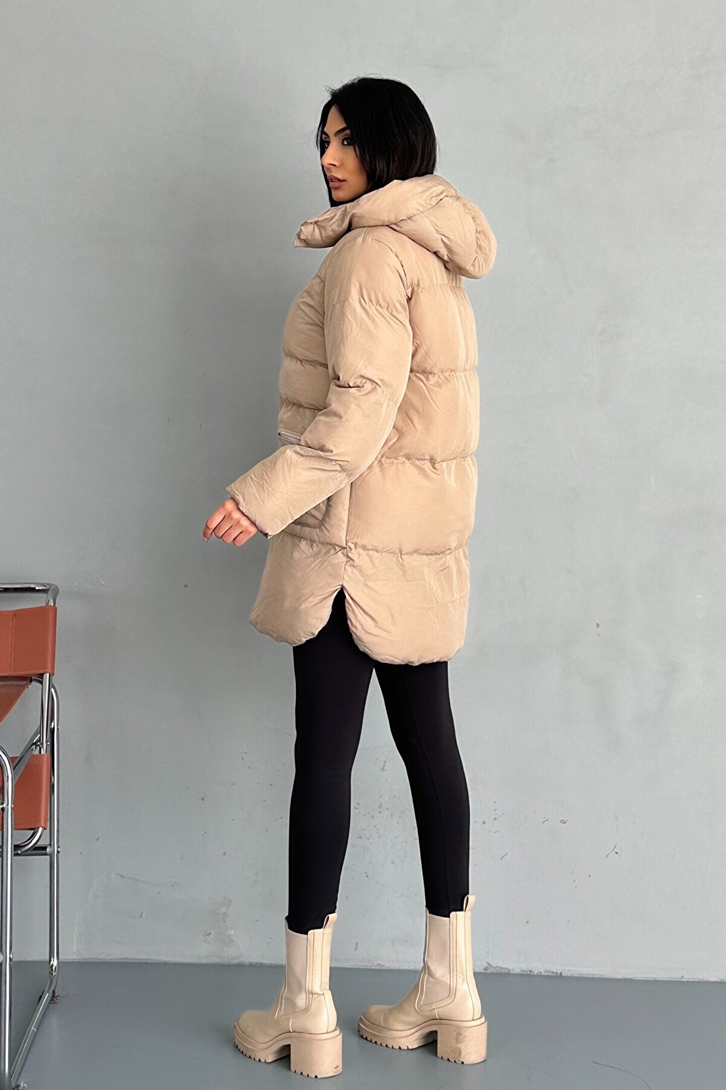 moda armanc Kadın Kapüşonlu Şişme Uzun Mont