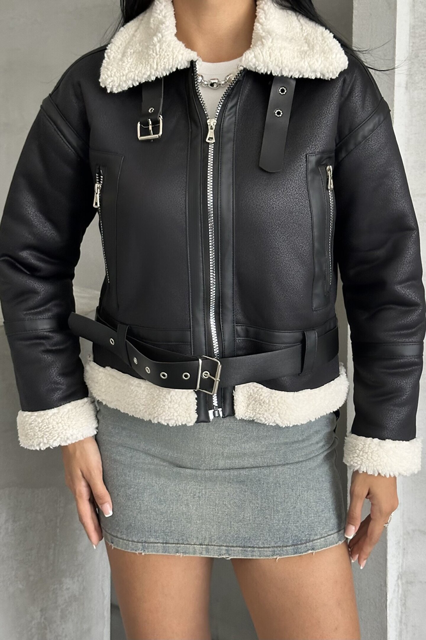 • Tarzınızı yansıtan, hem şık hem de sıcak tutan bir parça arıyorsanız bukadın siyah kemerli kürk detaylı deri monttam size göre!