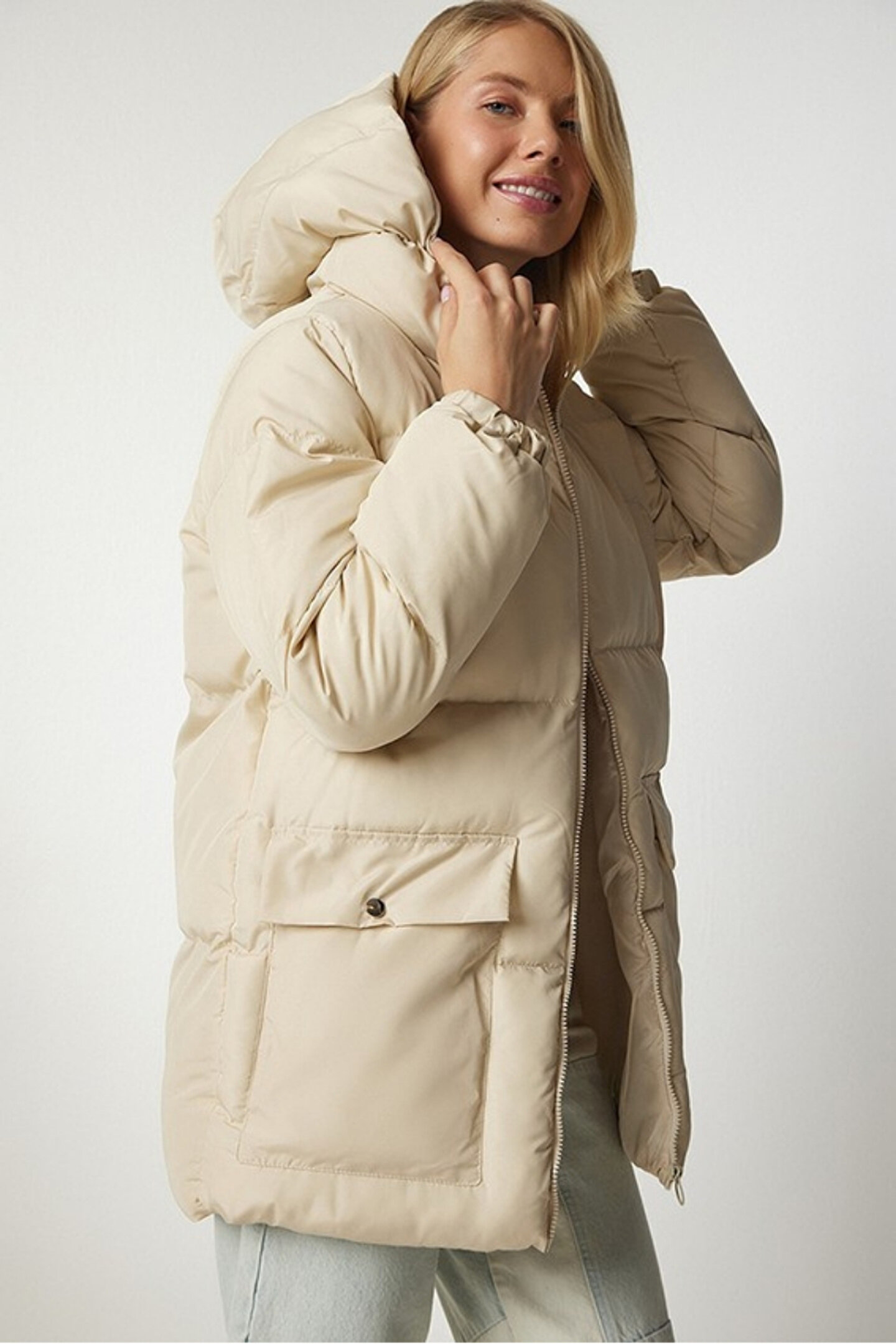 moda armanc Kadın Oversize Şişme Mont Kapüşonlu - 4 Cep Detaylı Fermuarlı Kışlık Günlük Mont